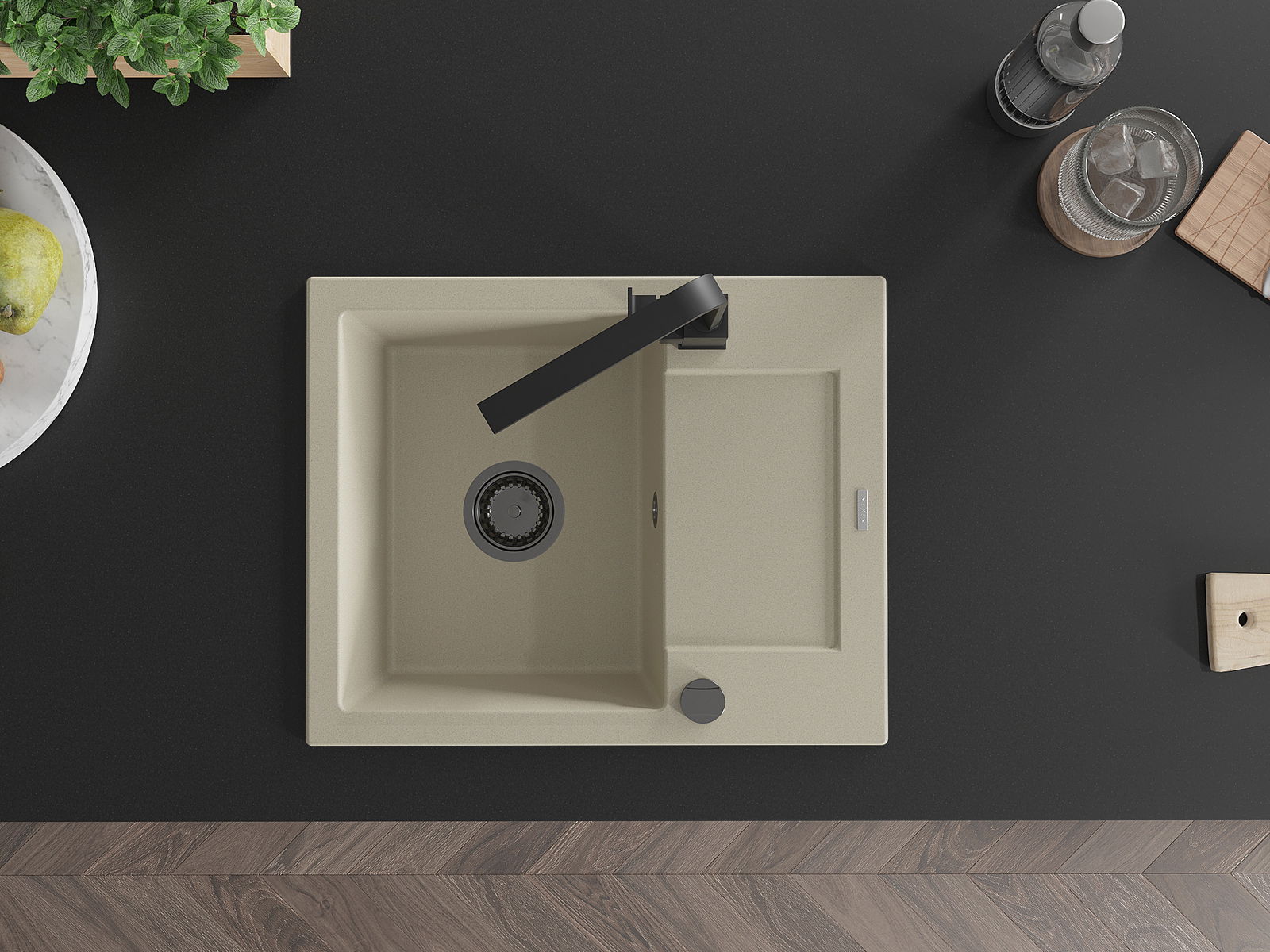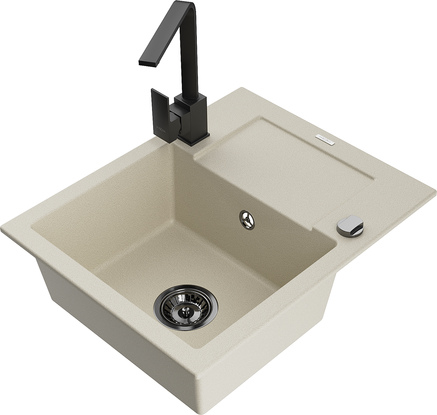 Mexen Enzo zlewozmywak granitowy 1-komorowy z ociekaczem i baterią kuchenną Rita, beżowy - 6506-69-670300-70
