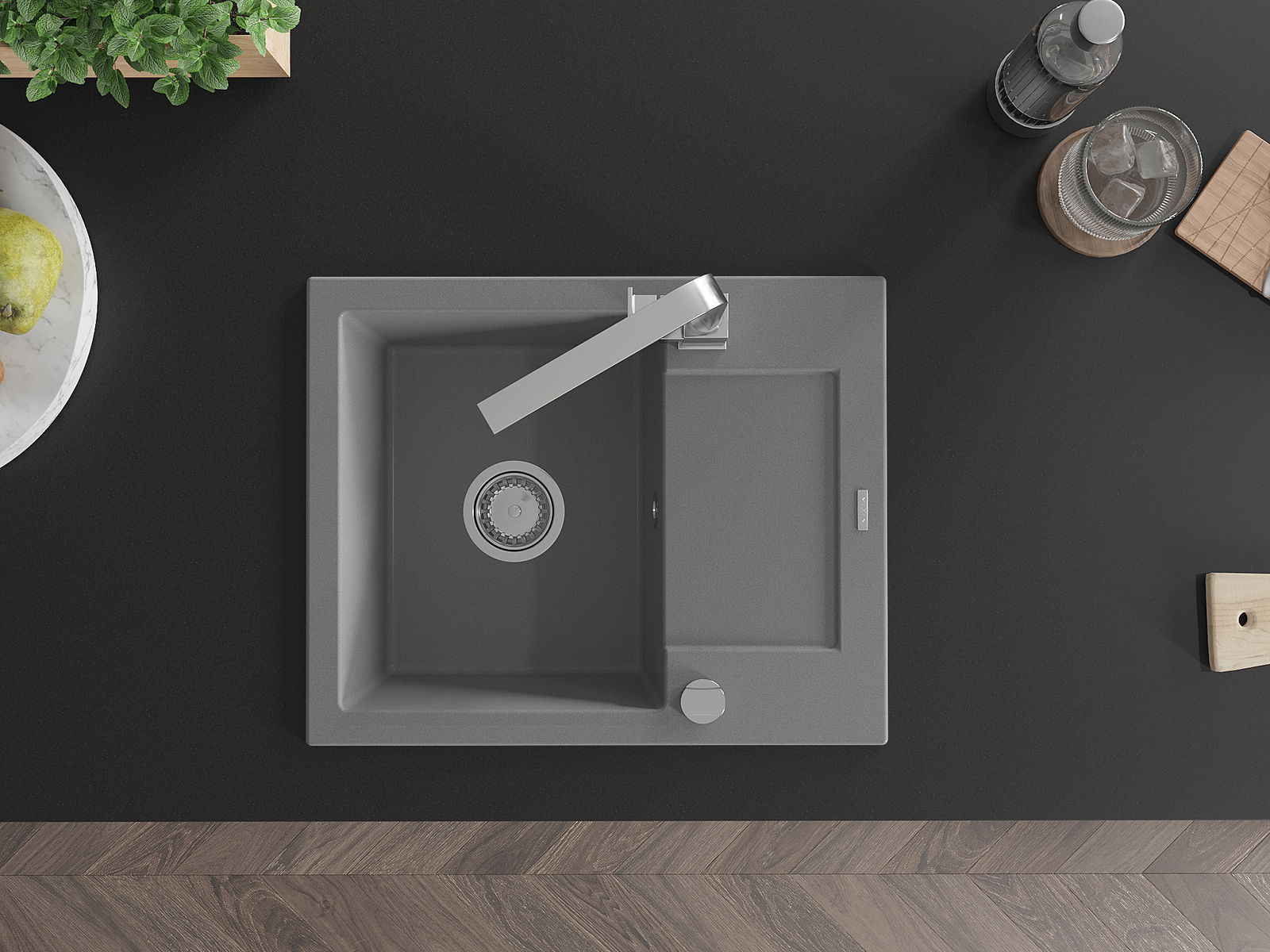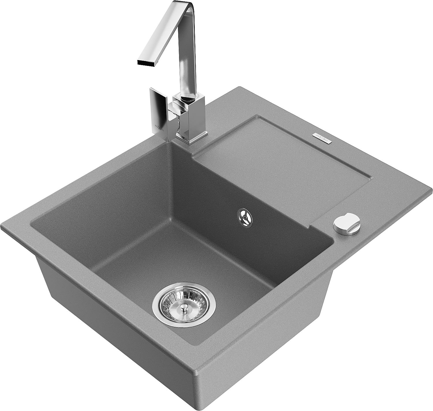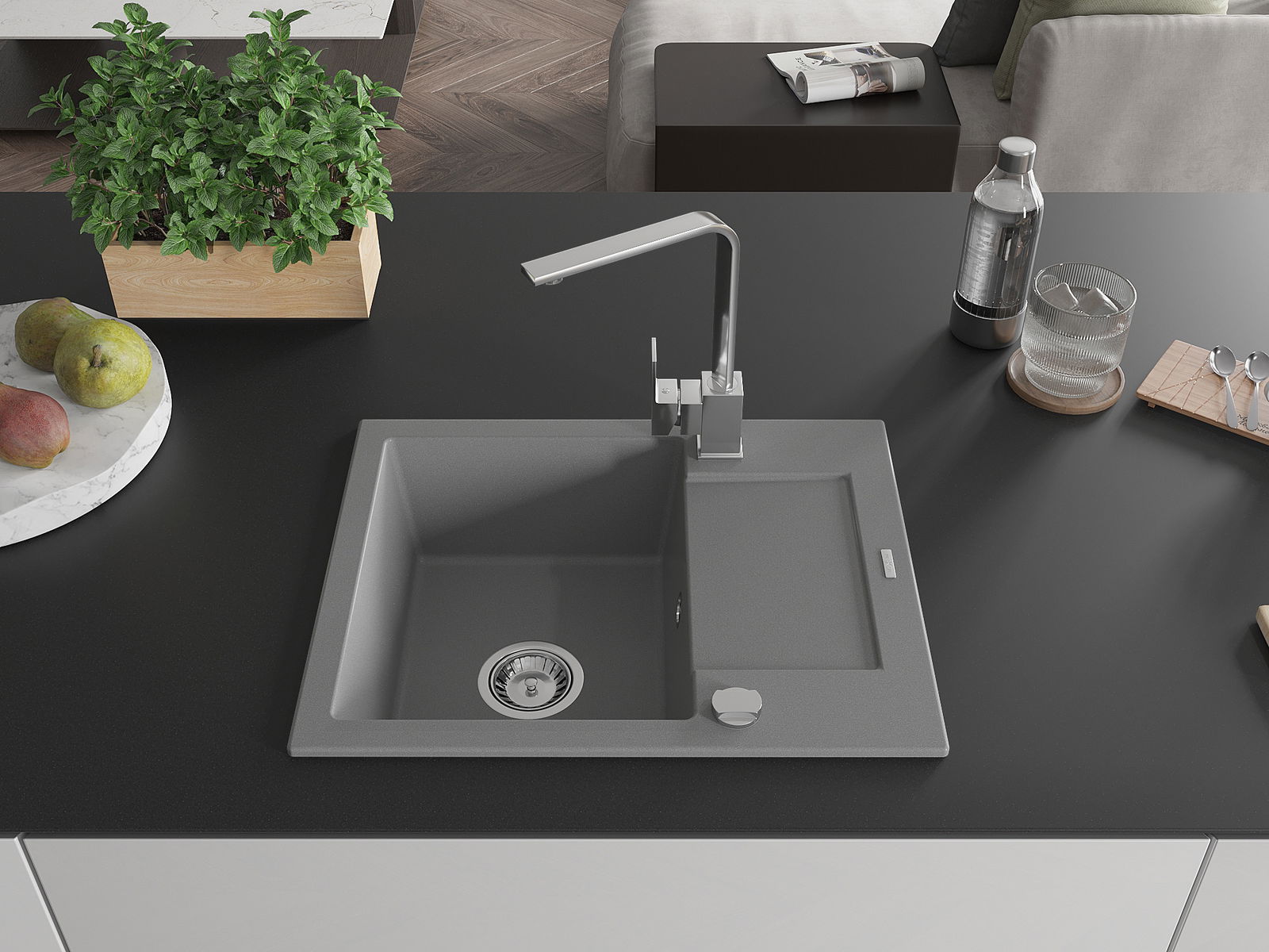 Mexen Enzo zlewozmywak granitowy 1-komorowy z ociekaczem i baterią kuchenną Rita, szary - 6506-71-670300-00