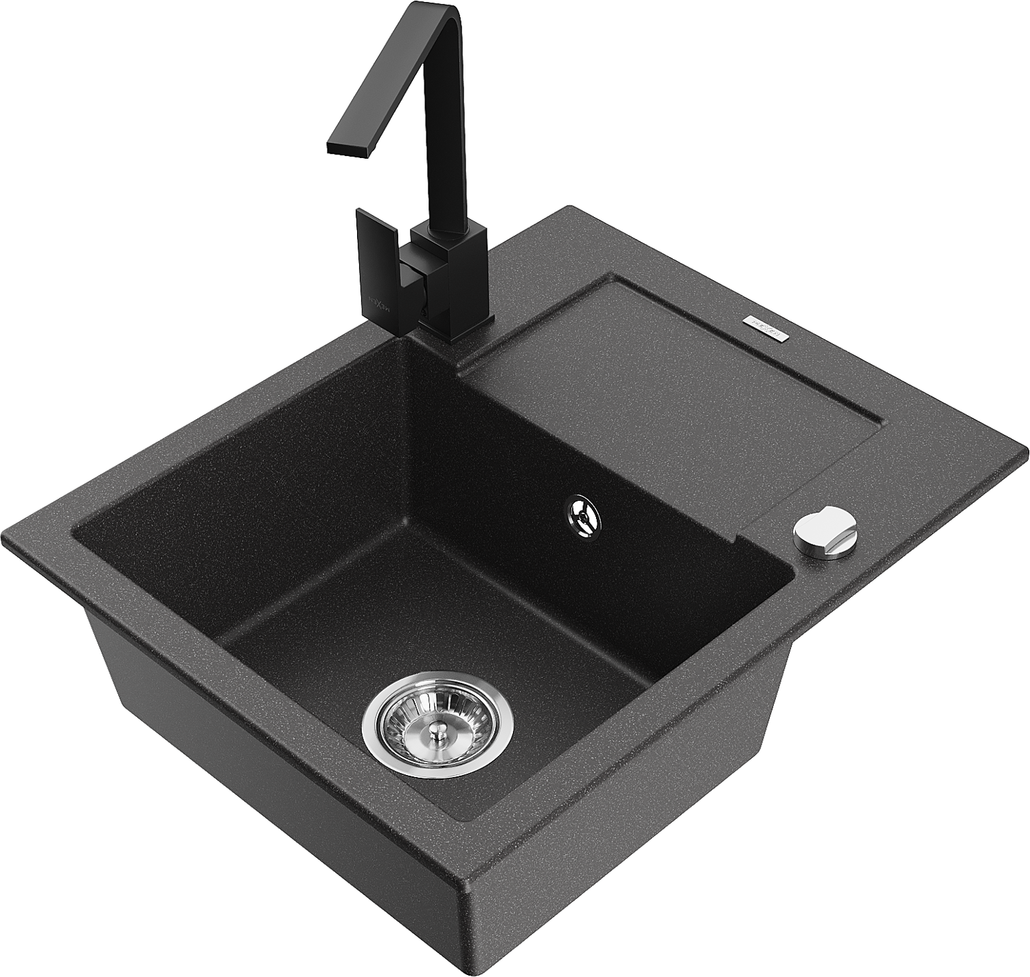 Mexen Enzo zlewozmywak granitowy 1-komorowy z ociekaczem i baterią kuchenną Rita, czarny nakrapiany - 6506-76-670300-70