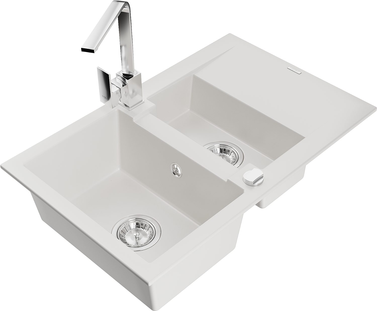 Mexen Gaspar zlewozmywak granitowy 1,5-komorowy z ociekaczem i baterią kuchenną Rita, biały - 6507-20-670300-00