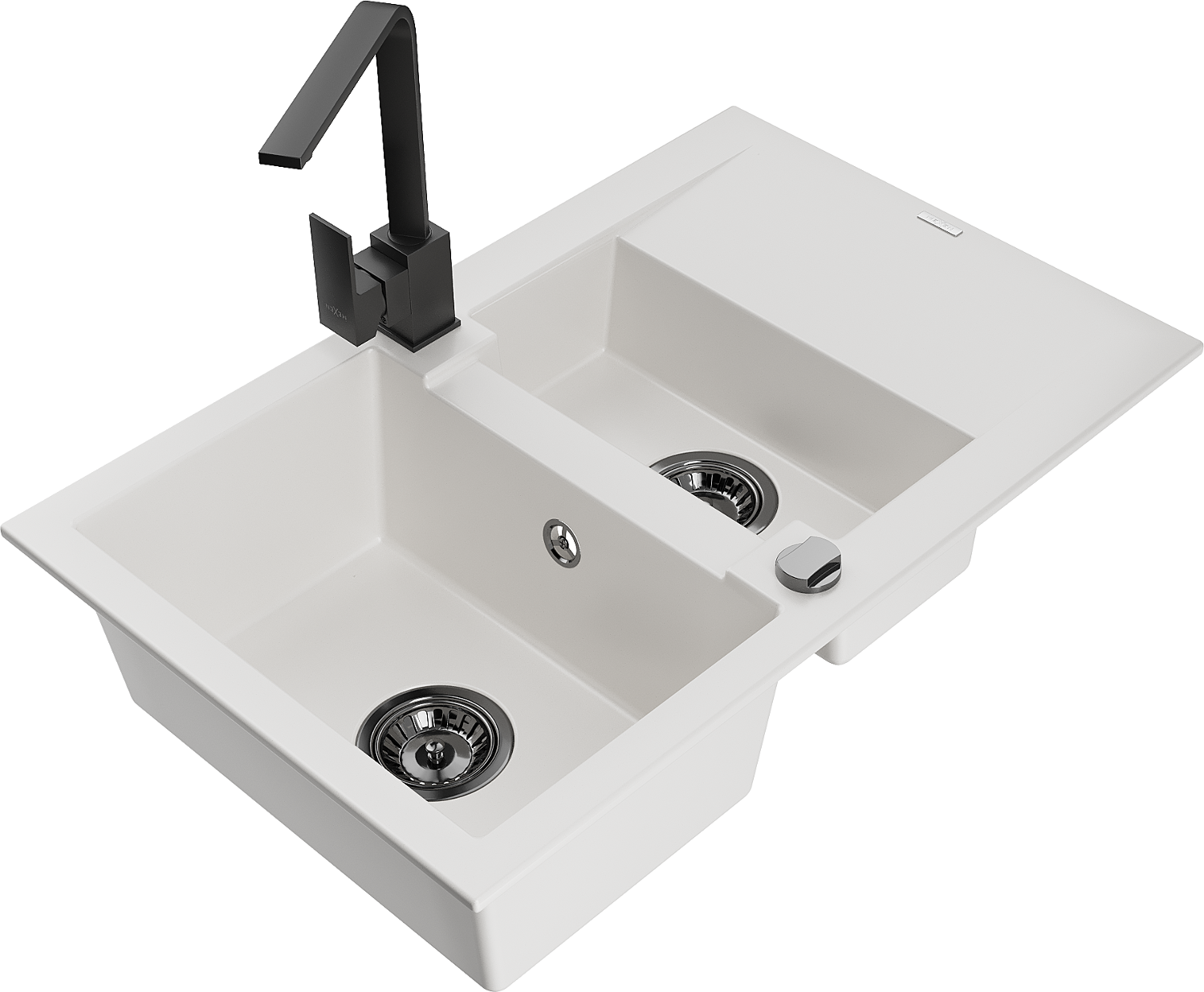 Mexen Gaspar zlewozmywak granitowy 1,5-komorowy z ociekaczem i baterią kuchenną Rita, biały - 6507-20-670300-70