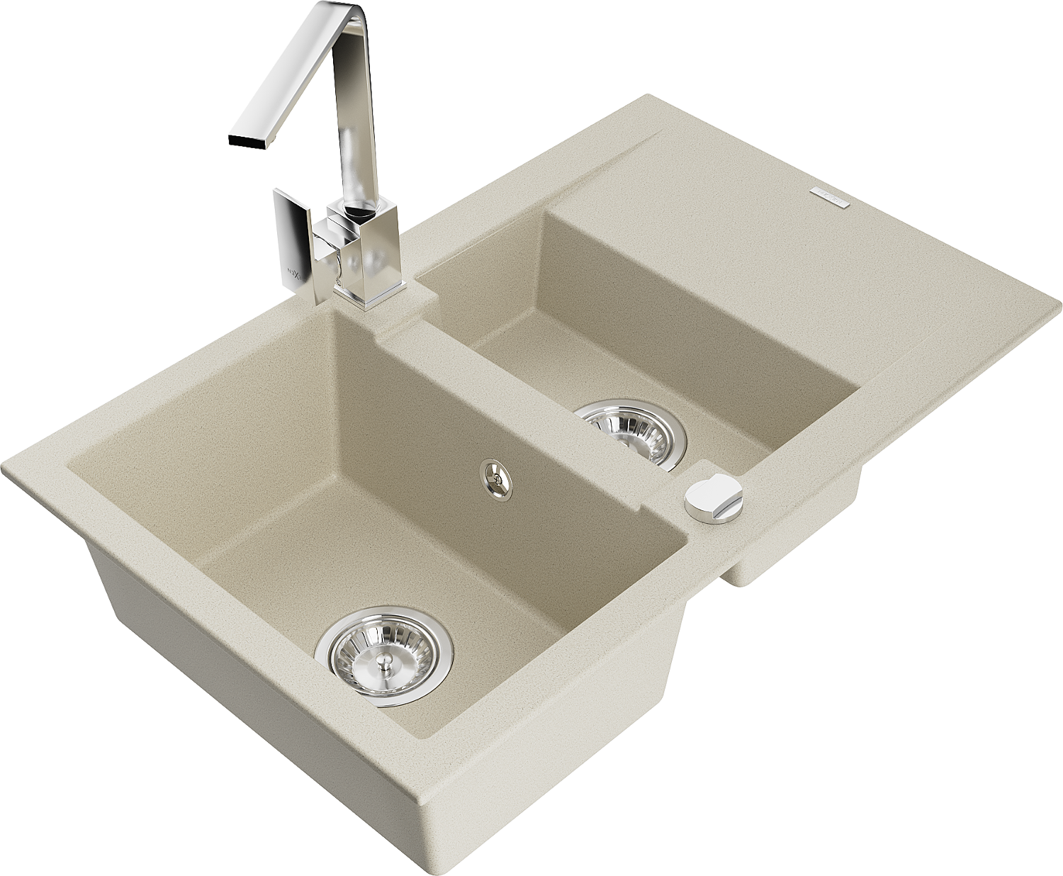 Mexen Gaspar zlewozmywak granitowy 1,5-komorowy z ociekaczem i baterią kuchenną Rita, beżowy - 6507-69-670300-00