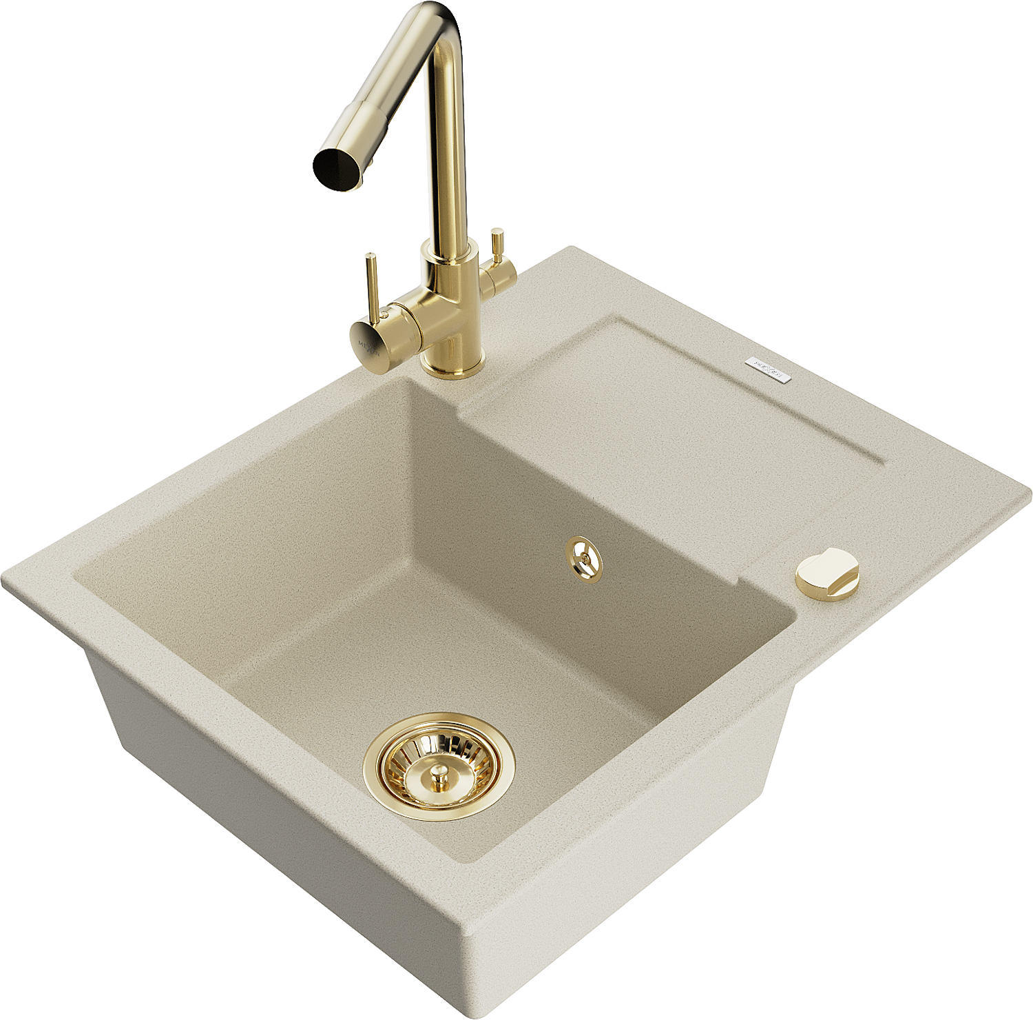 Mexen Enzo zlewozmywak granitowy 1-komorowy z ociekaczem i baterią kuchenną Duero, beżowy - 6506-69-671600-50
