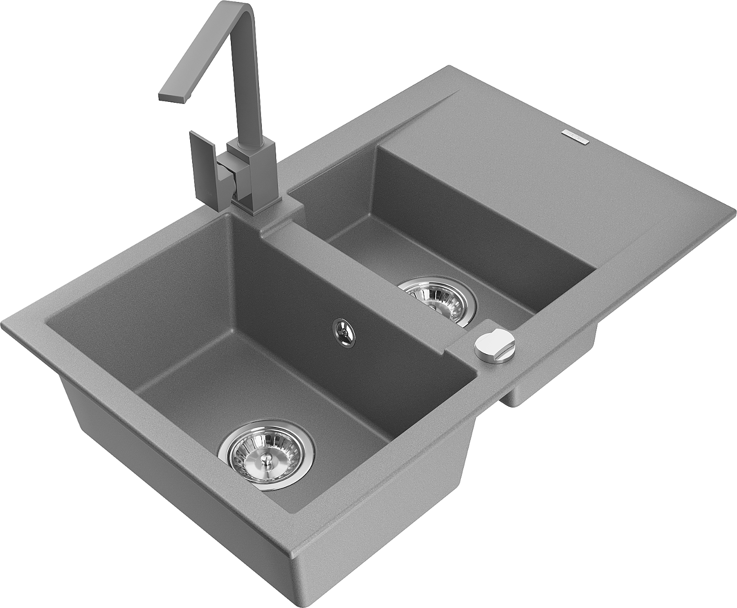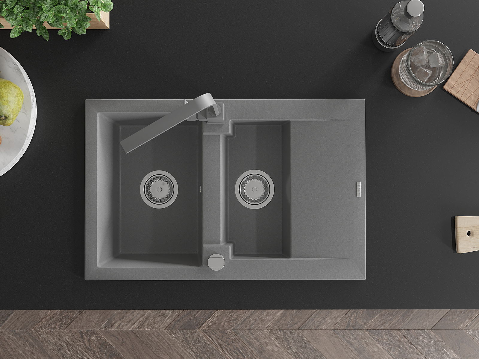 Mexen Gaspar zlewozmywak granitowy 1,5-komorowy z ociekaczem i baterią kuchenną Rita, szary - 6507-71-670300-71