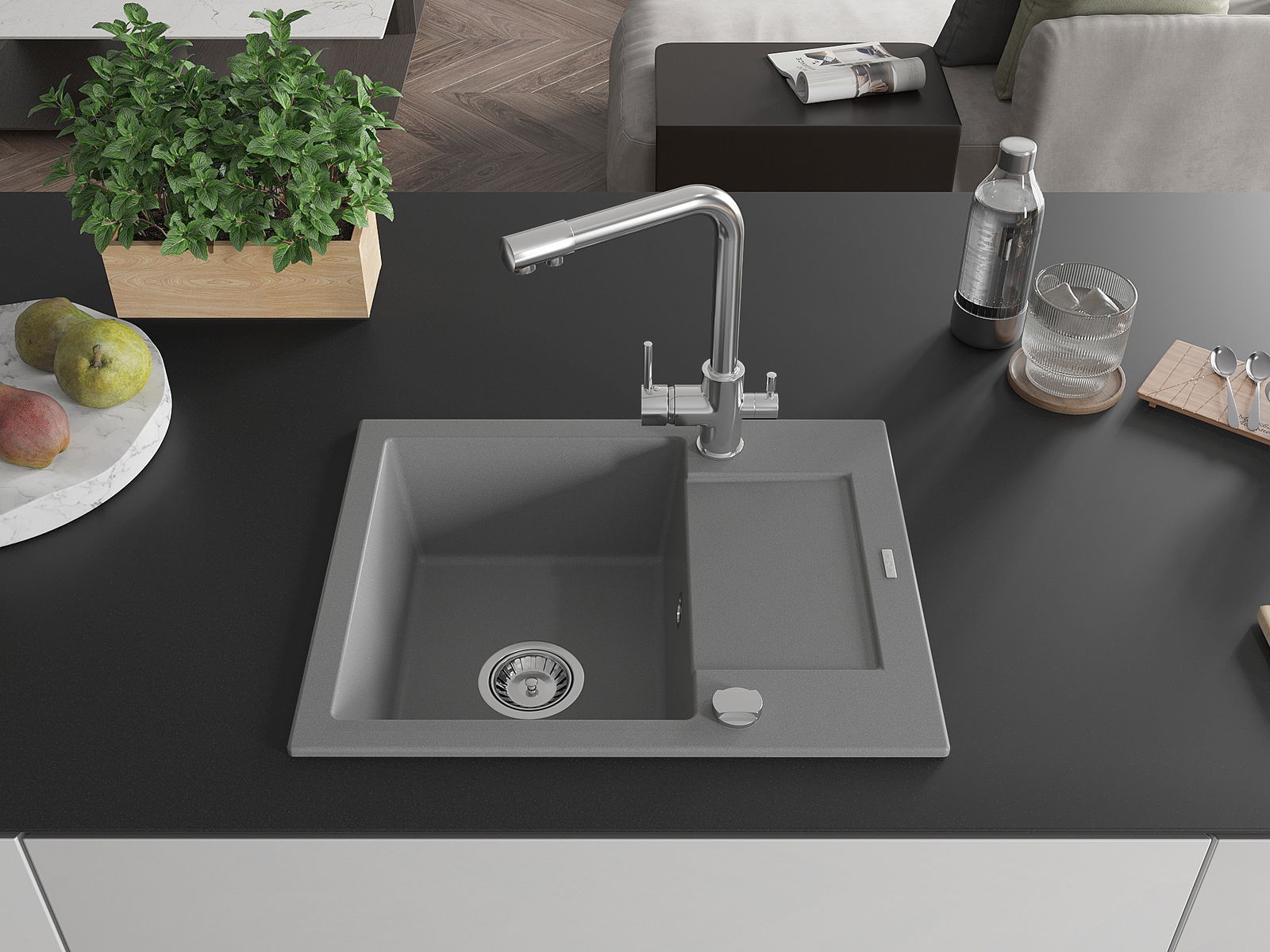 Zlewozmywak został wykonany z wysokiej jakości granitu. Stanowi eleganckie, a przede wszystkim praktyczne uzupełnienie każdej kuchni, niezależnie od jej stylu. Wysoka jakość oraz trwałość granitu zapewniają wieloletnie użytkowanie.