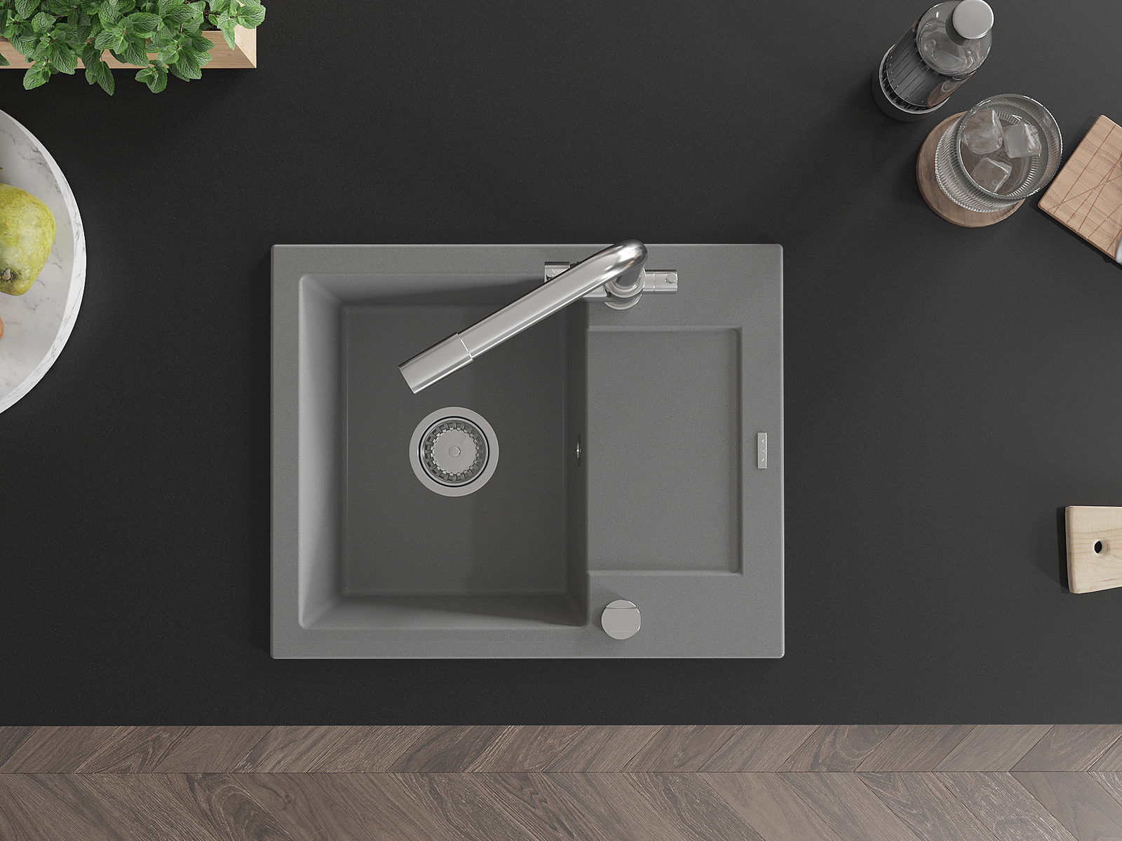 Mexen Enzo zlewozmywak granitowy 1-komorowy z ociekaczem i baterią kuchenną Duero, szary - 6506-71-671600-00