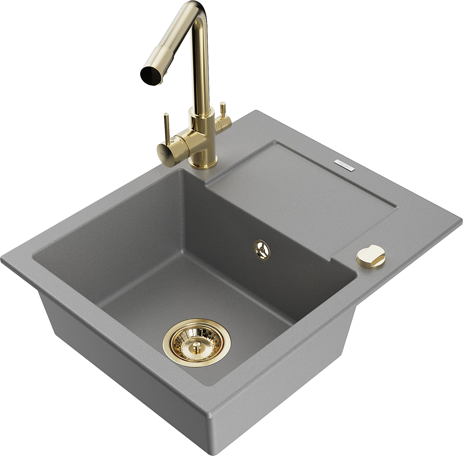 Mexen Enzo zlewozmywak granitowy 1-komorowy z ociekaczem i baterią kuchenną Duero, szary - 6506-71-671600-50