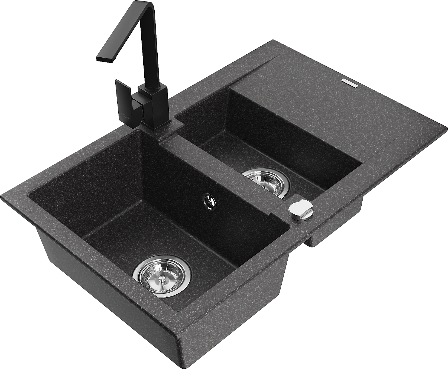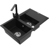 Mexen Gaspar zlewozmywak granitowy 1,5-komorowy z ociekaczem i baterią kuchenną Rita, czarny nakrapiany - 6507-76-670300-70