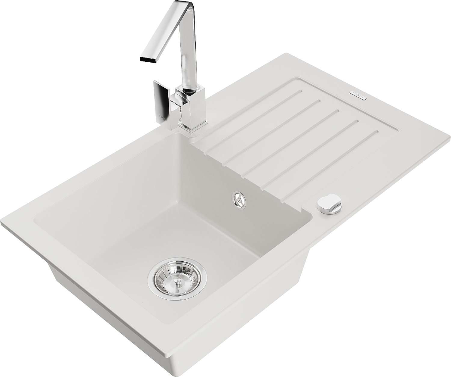 Mexen Pablo zlewozmywak granitowy 1-komorowy z ociekaczem i baterią kuchenną Rita, biały - 6510-20-670300-00