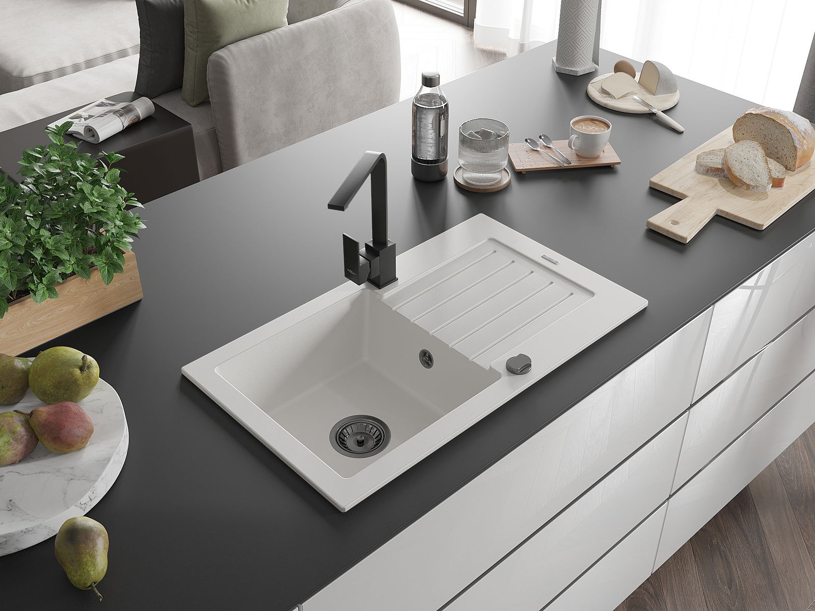 Zlewozmywak został wykonany z wysokiej jakości granitu. Stanowi eleganckie, a przede wszystkim praktyczne uzupełnienie każdej kuchni, niezależnie od jej stylu. Wysoka jakość oraz trwałość granitu zapewniają wieloletnie użytkowanie.