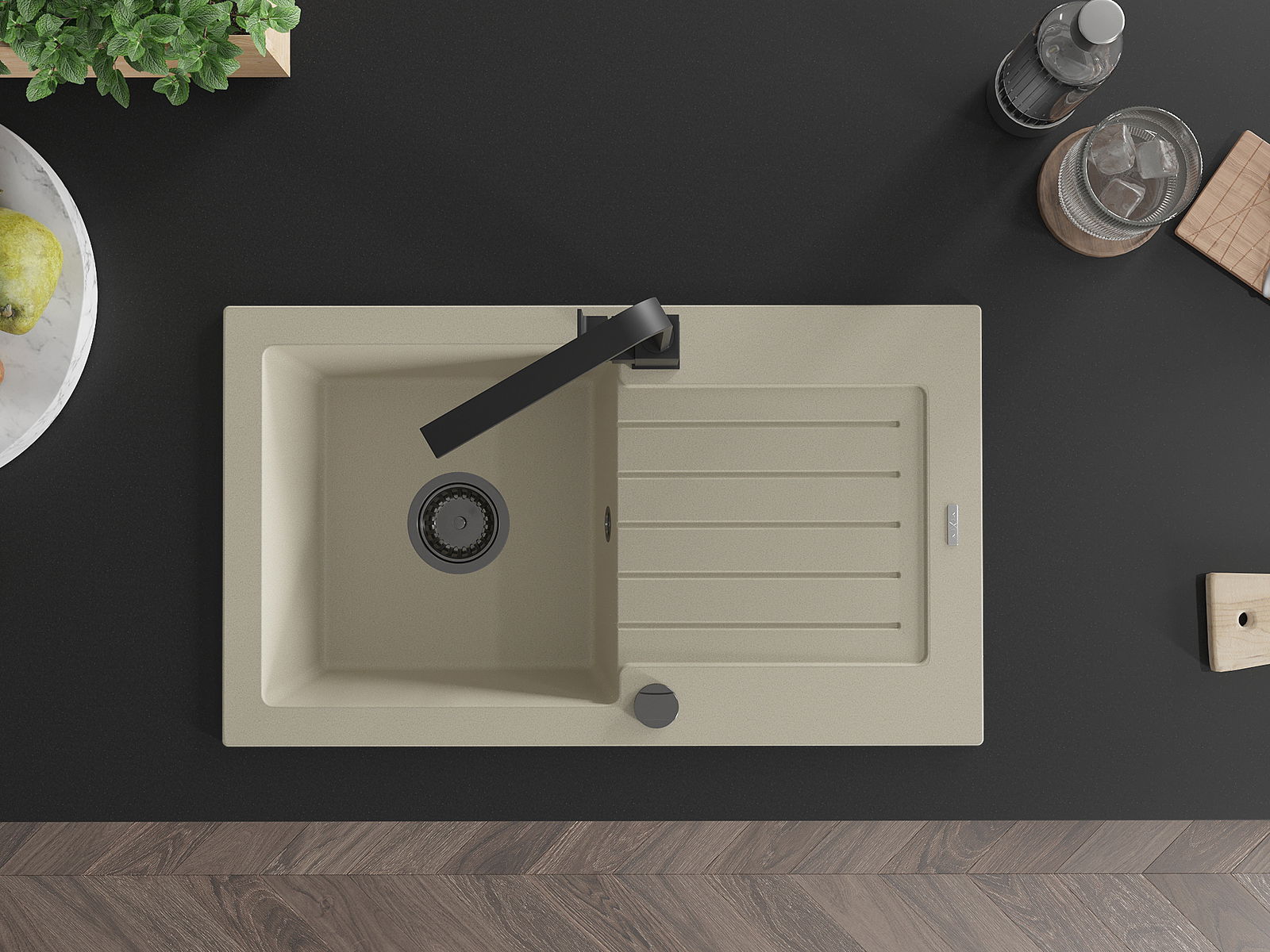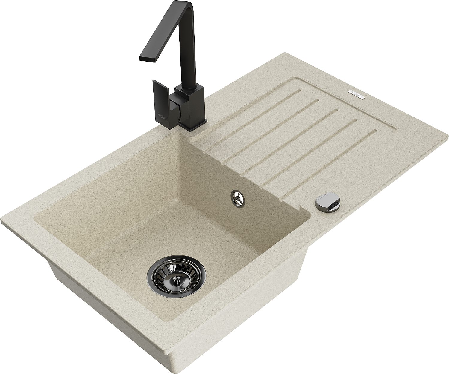 Mexen Pablo zlewozmywak granitowy 1-komorowy z ociekaczem i baterią kuchenną Rita, beżowy - 6510-69-670300-70