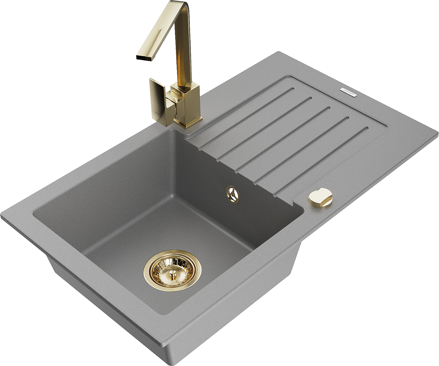 Mexen Pablo zlewozmywak granitowy 1-komorowy z ociekaczem i baterią kuchenną Rita, szary - 6510-71-670300-50