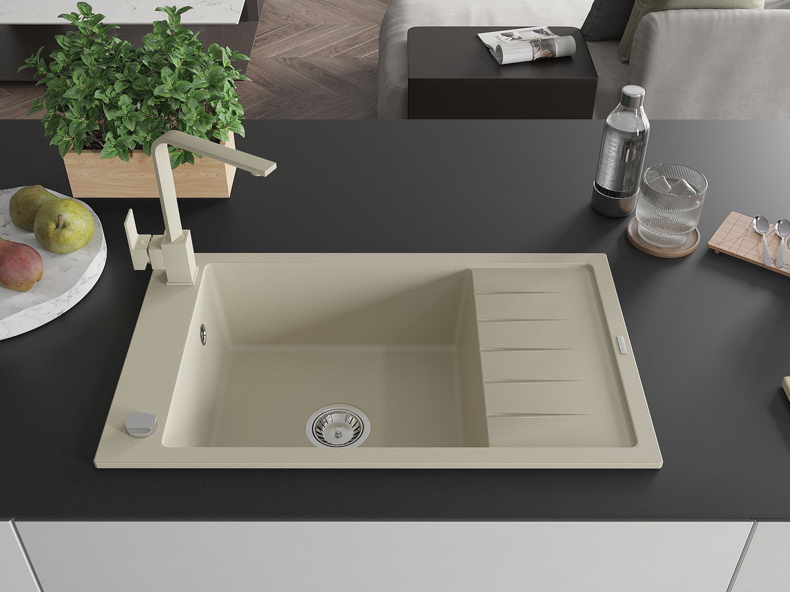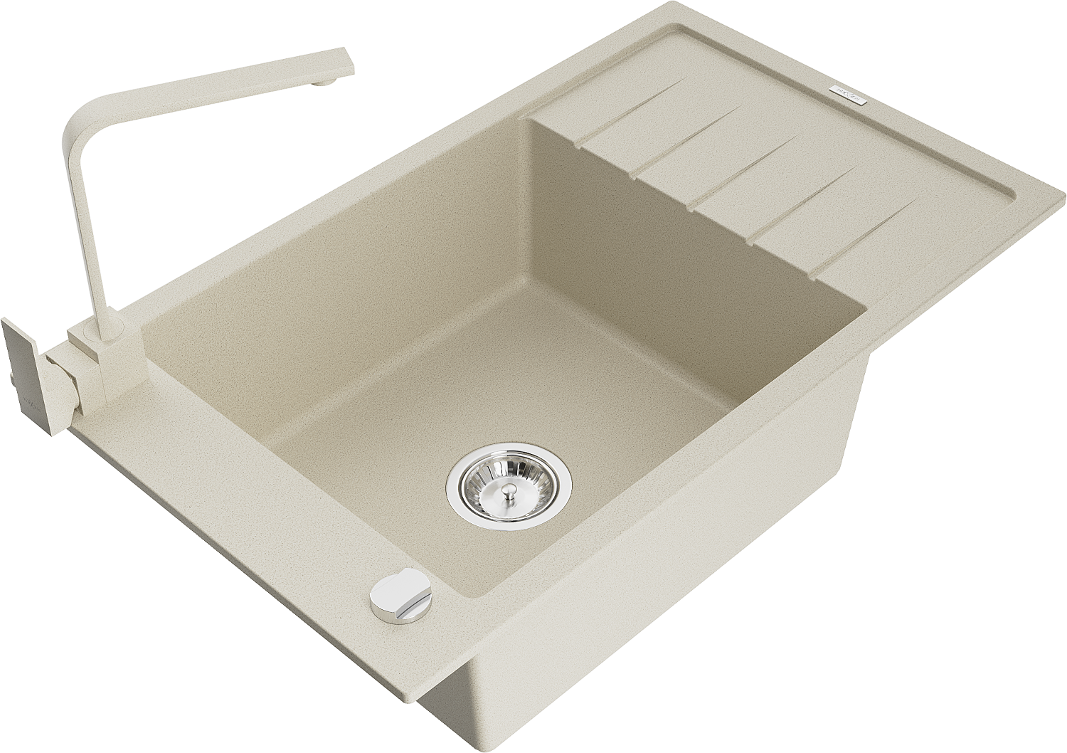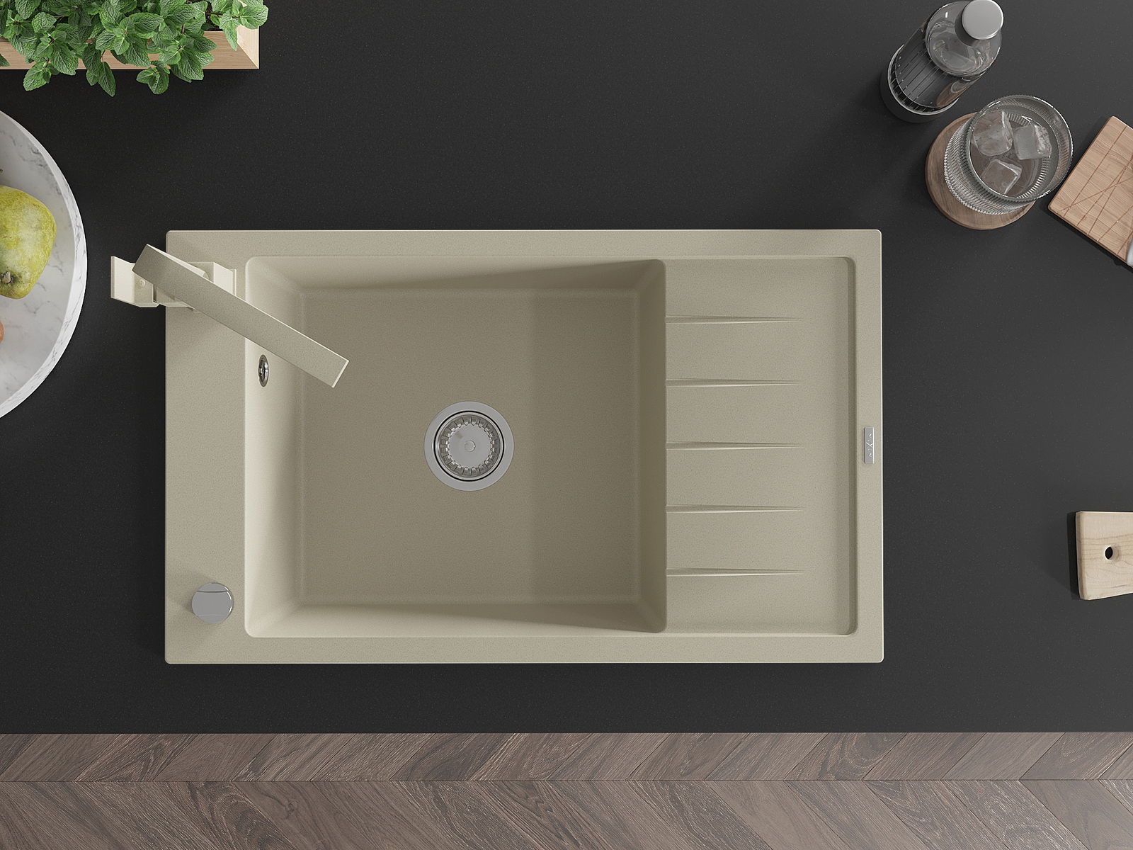 Mexen Elias zlewozmywak granitowy 1-komorowy z ociekaczem i baterią kuchenną Rita, beżowy - 6511-69-670300-69