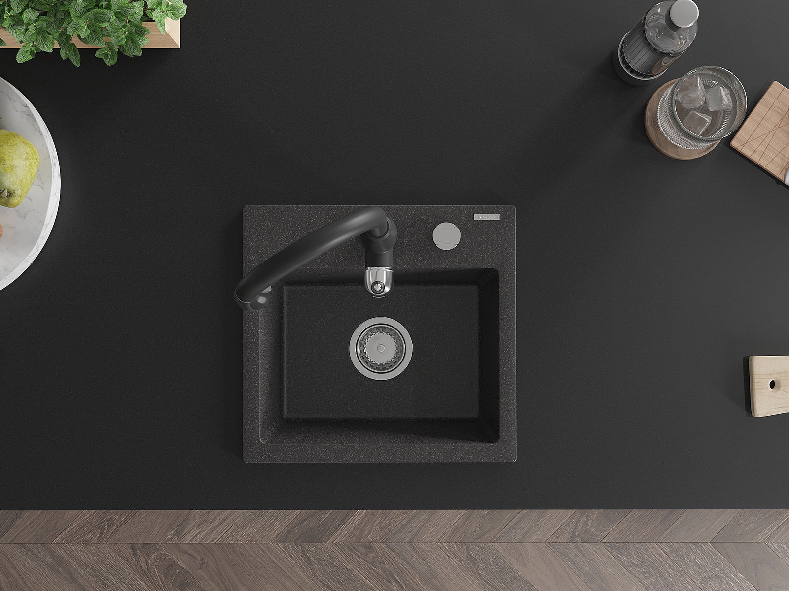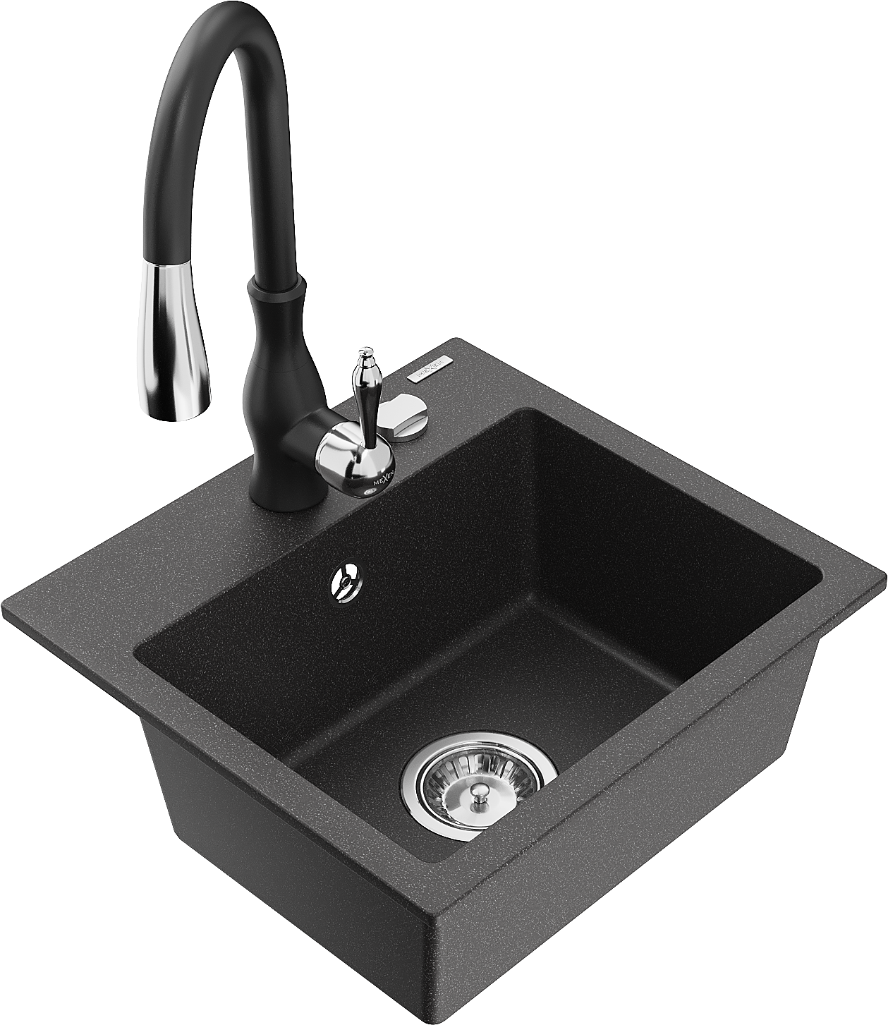 Mexen Milo zlewozmywak granitowy 1-komorowy z baterią kuchenną Savita, czarny nakrapiany - 6505-76-672601-70