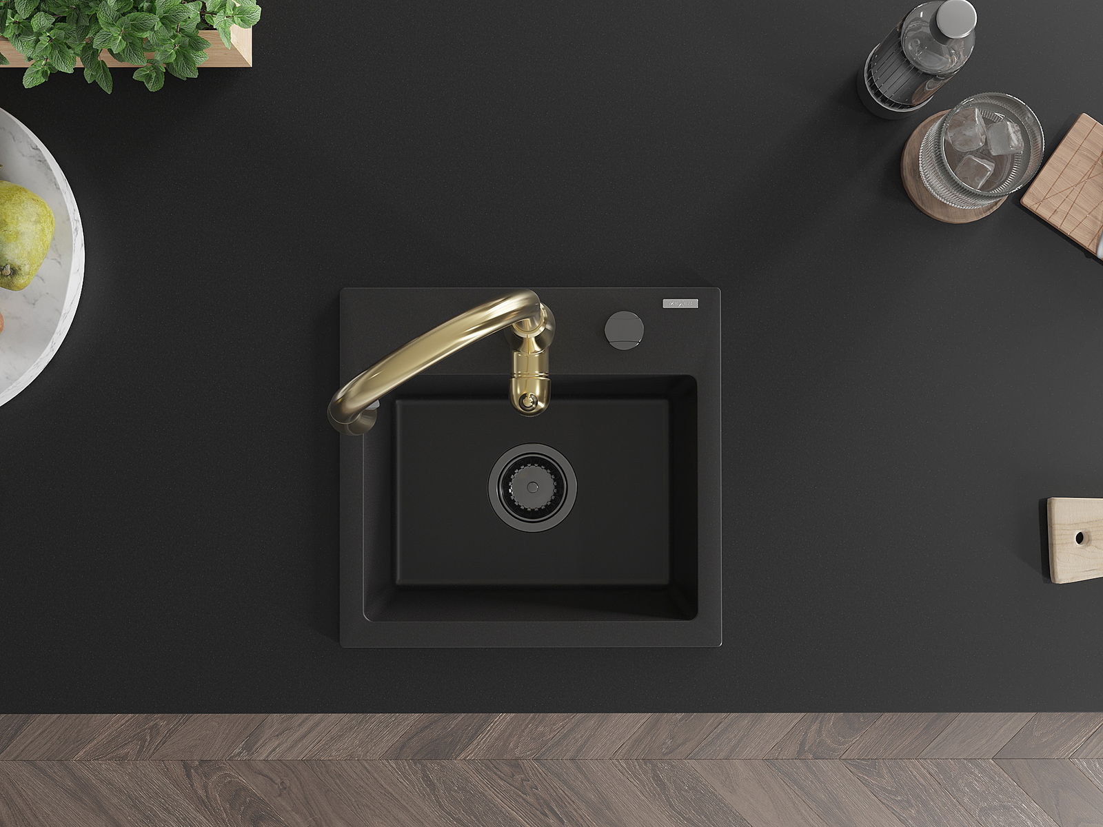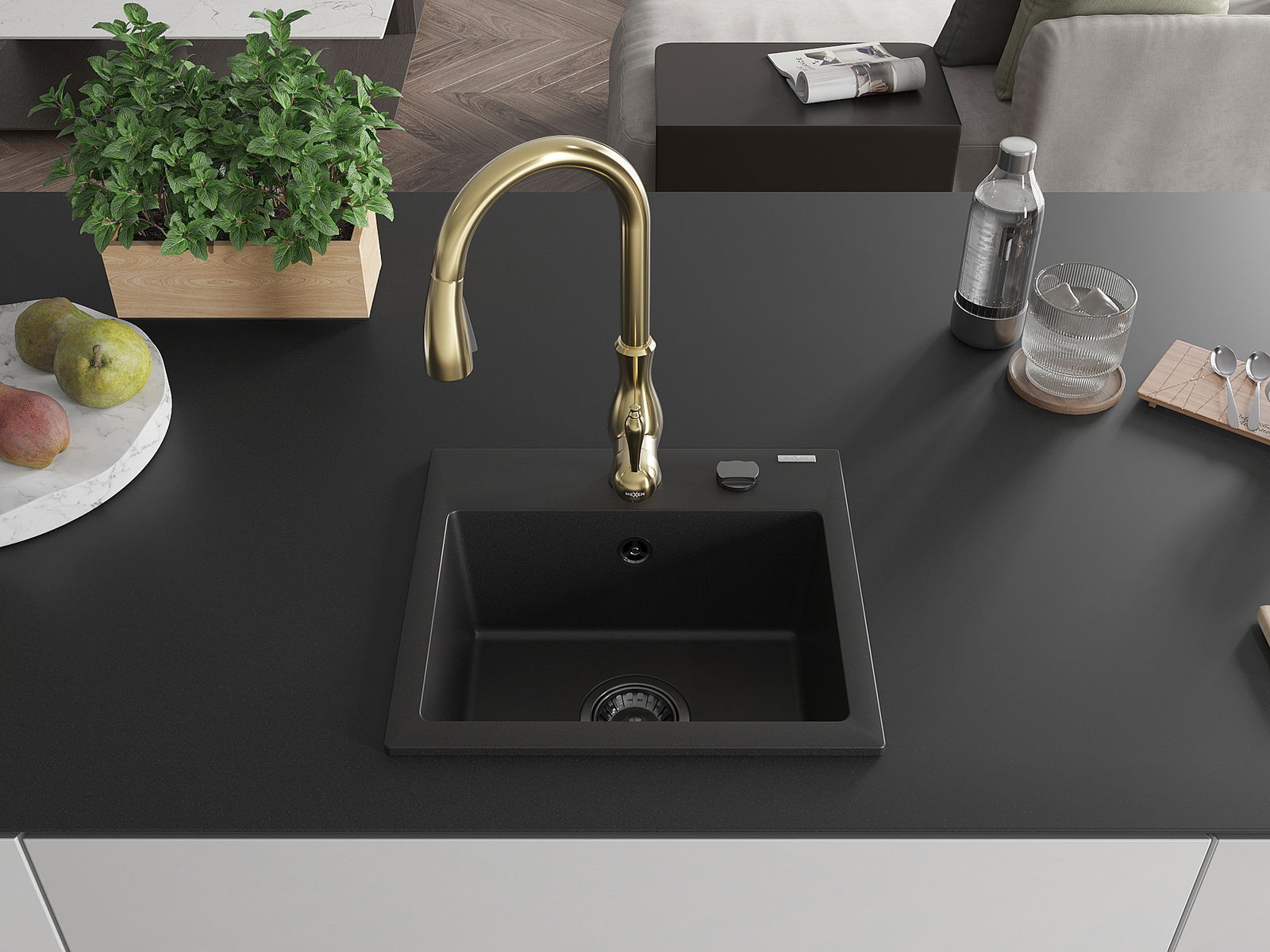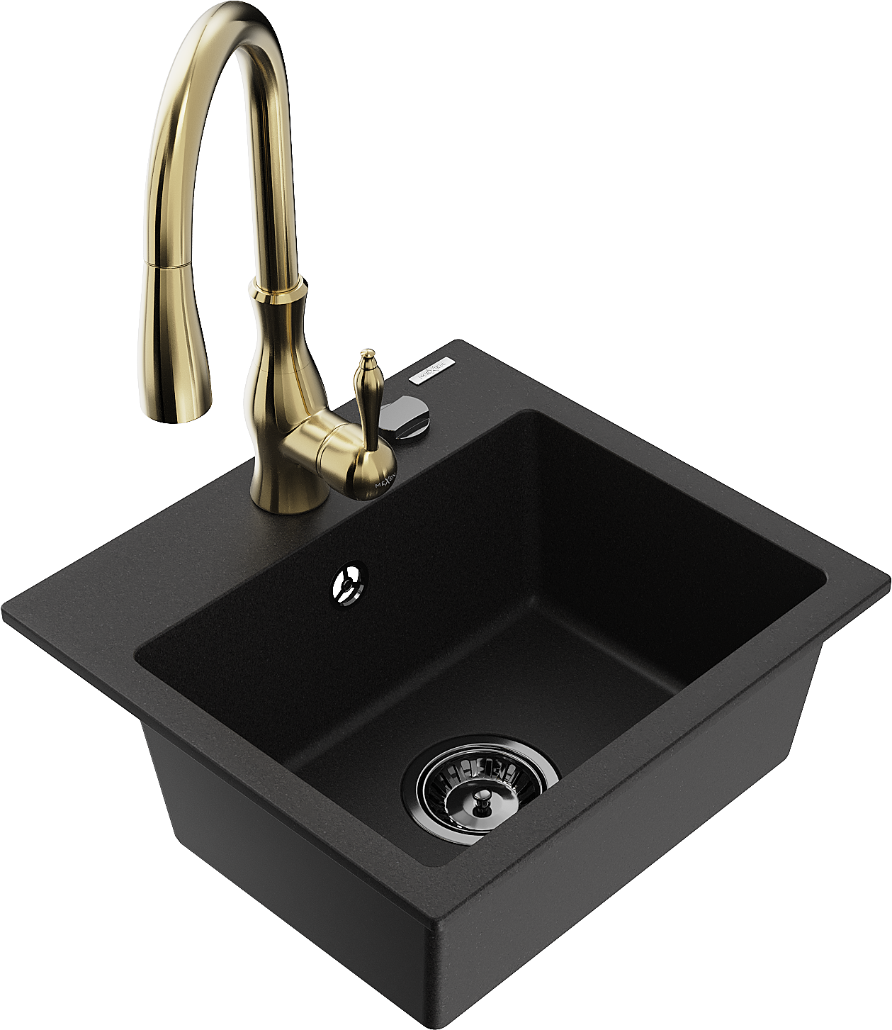 Mexen Milo zlewozmywak granitowy 1-komorowy z baterią kuchenną Savita, czarny - 6505-77-672601-50-B