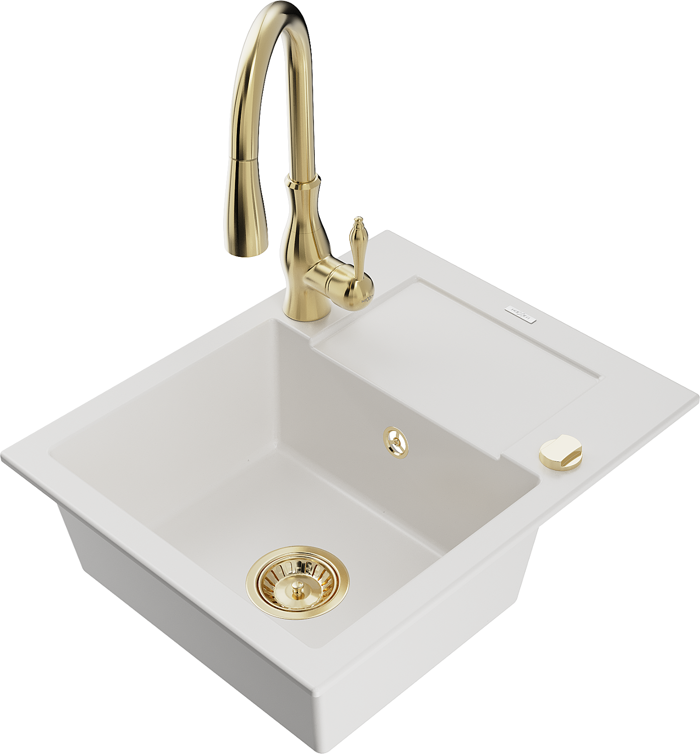 Mexen Enzo zlewozmywak granitowy 1-komorowy z ociekaczem i baterią kuchenną Savita, biały - 6506-20-672601-50