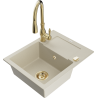 Zlewozmywak został wykonany z wysokiej jakości granitu. Stanowi eleganckie, a przede wszystkim praktyczne uzupełnienie każdej kuchni, niezależnie od jej stylu. Wysoka jakość oraz trwałość granitu zapewniają wieloletnie użytkowanie.