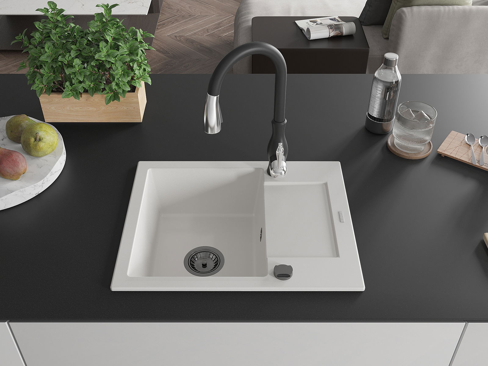 Zlewozmywak został wykonany z wysokiej jakości granitu. Stanowi eleganckie, a przede wszystkim praktyczne uzupełnienie każdej kuchni, niezależnie od jej stylu. Wysoka jakość oraz trwałość granitu zapewniają wieloletnie użytkowanie.