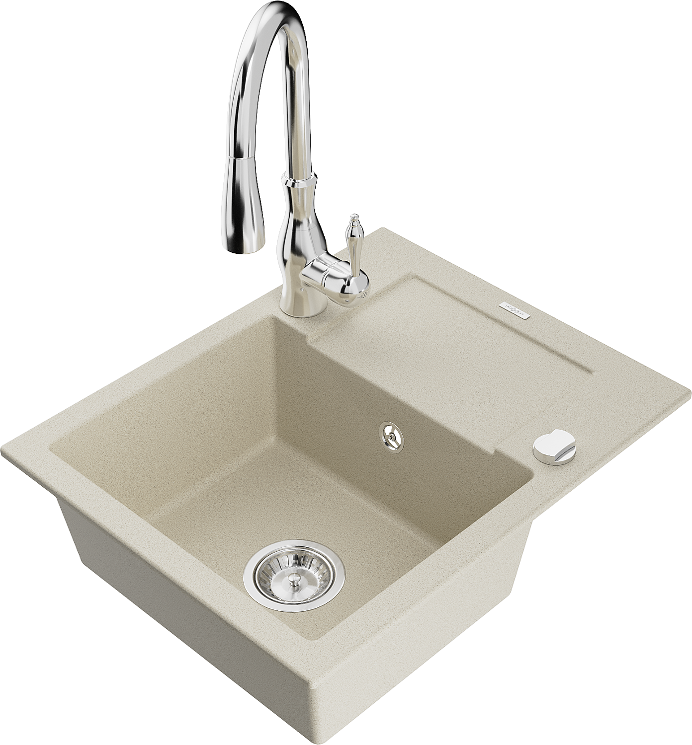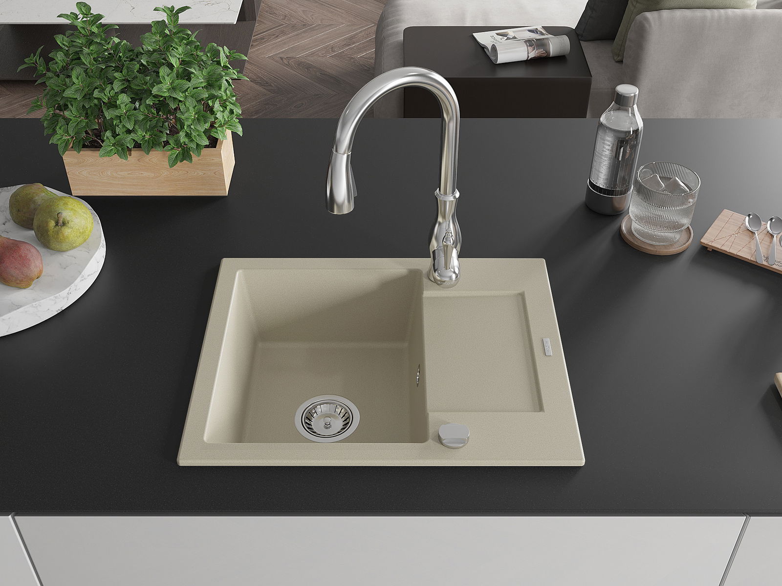 Mexen Enzo zlewozmywak granitowy 1-komorowy z ociekaczem i baterią kuchenną Savita, beżowy - 6506-69-672601-00