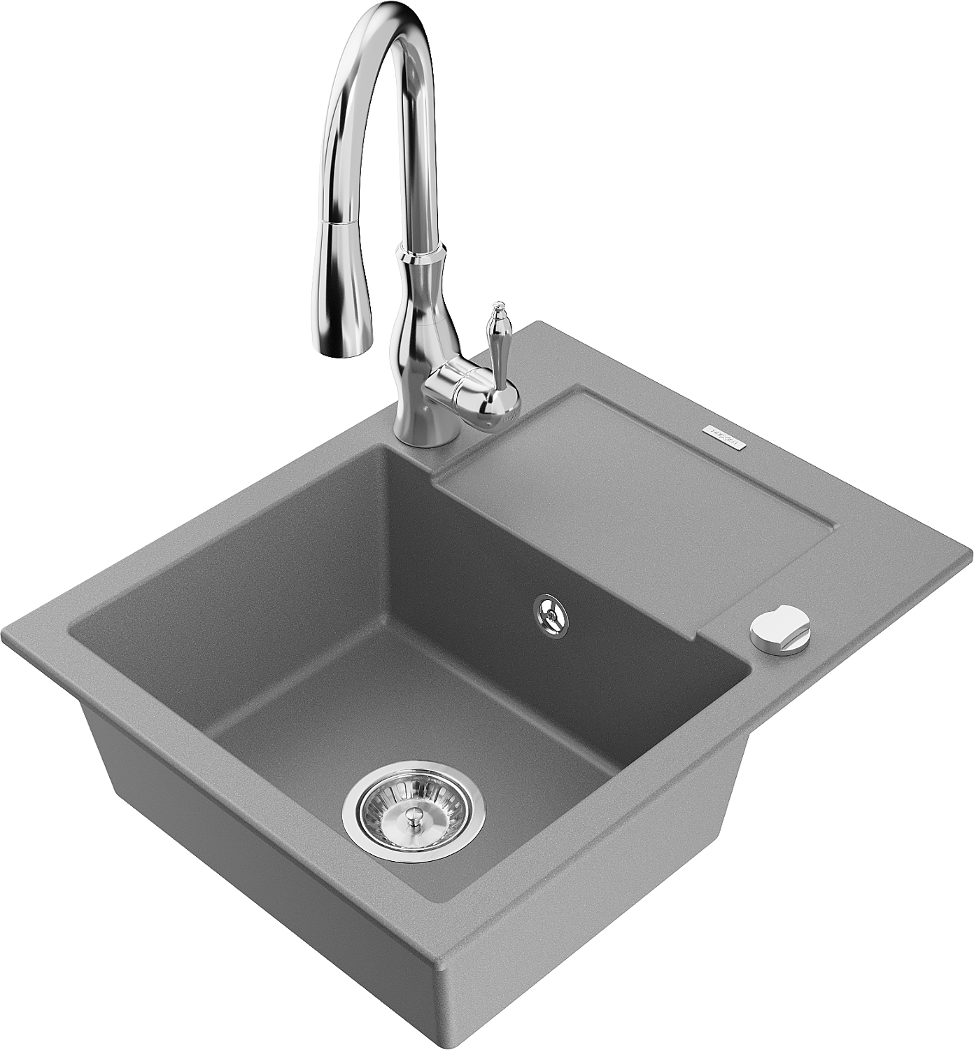 Mexen Enzo zlewozmywak granitowy 1-komorowy z ociekaczem i baterią kuchenną Savita, szary - 6506-71-672601-00