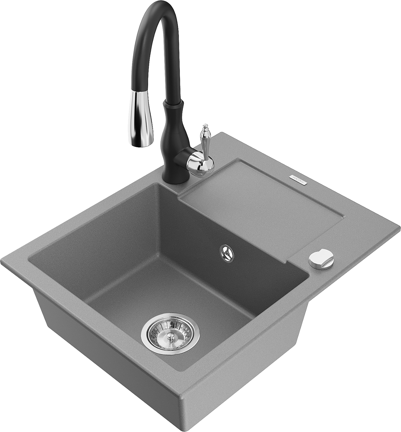 Mexen Enzo zlewozmywak granitowy 1-komorowy z ociekaczem i baterią kuchenną Savita, szary - 6506-71-672601-70