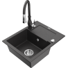 Mexen Enzo zlewozmywak granitowy 1-komorowy z ociekaczem i baterią kuchenną Savita, szary - 6506-71-672601-71