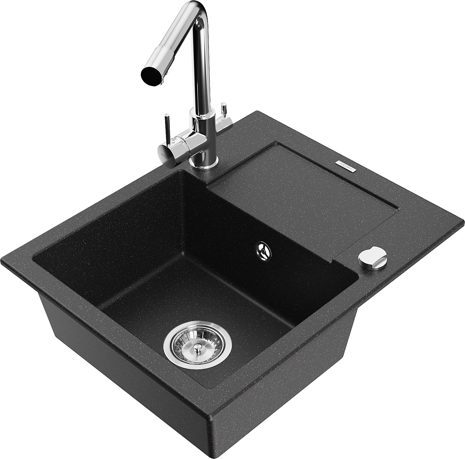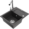 Mexen Enzo zlewozmywak granitowy 1-komorowy z ociekaczem i baterią kuchenną Duero, czarny/srebrny metalik - 6506-73-671600-00