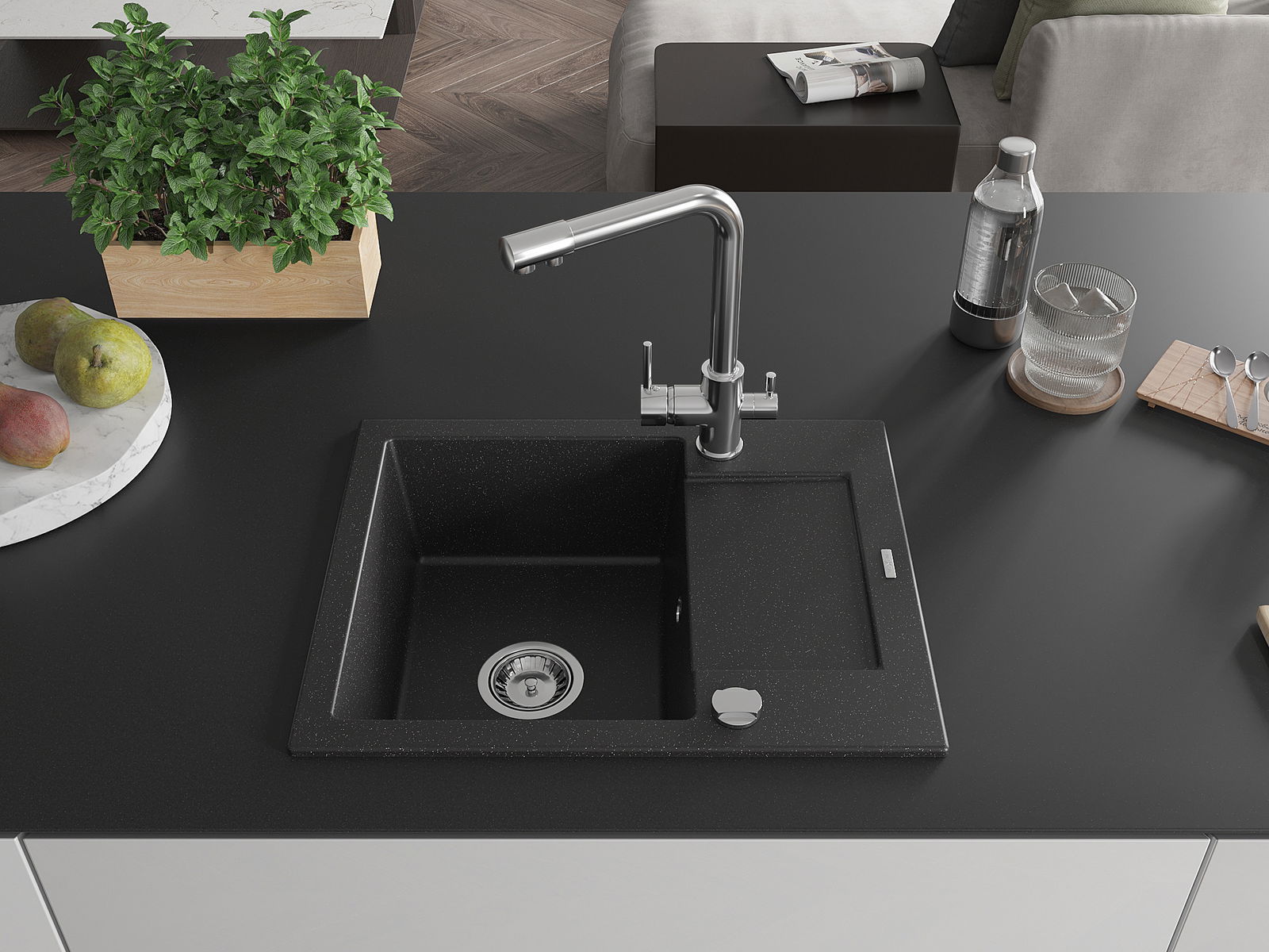 Dobrze zabezpieczona powierzchnia zlewozmywaka hamuje wnikanie zabrudzeń do jego wewnętrznych struktur. Dzięki temu utrzymanie zlewu w czystości jest jeszcze łatwiejsze, a jego powierzchnia zachowuje swoją estetykę na dłużej.