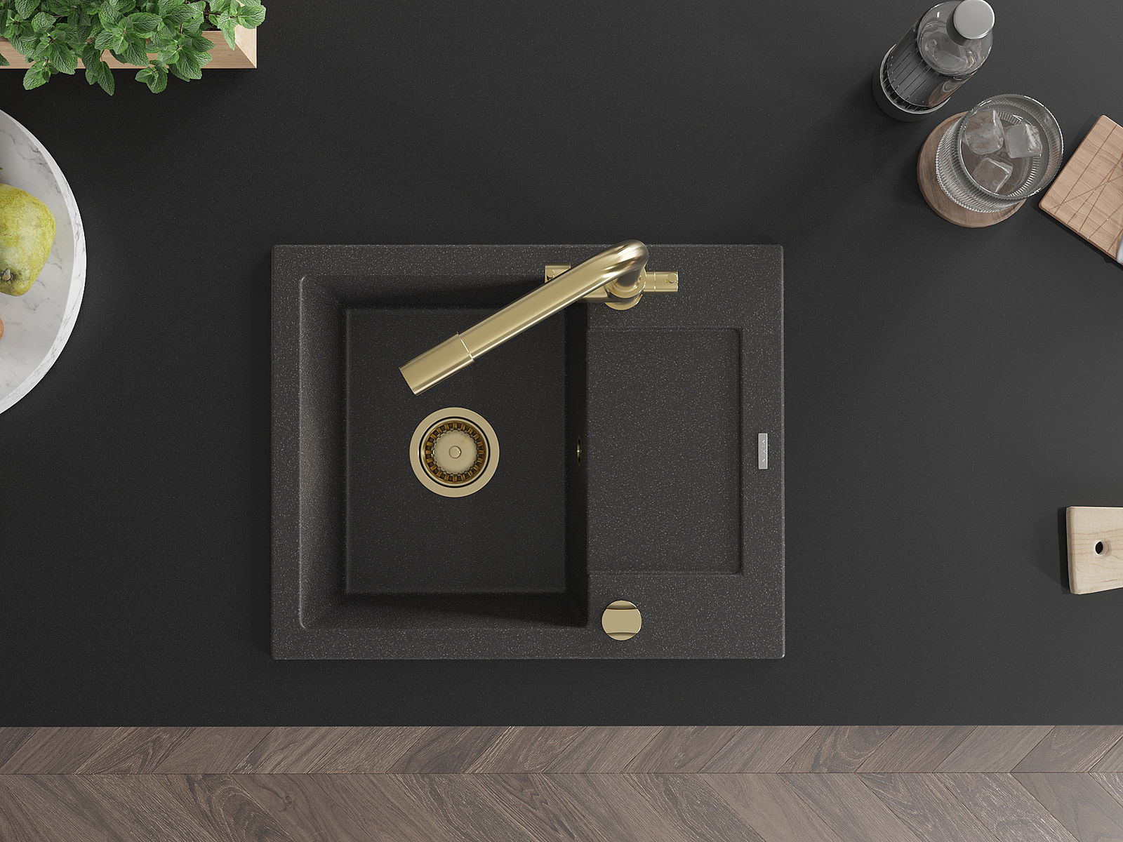 Mexen Enzo zlewozmywak granitowy 1-komorowy z ociekaczem i baterią kuchenną Duero, czarny nakrapiany - 6506-76-671600-50