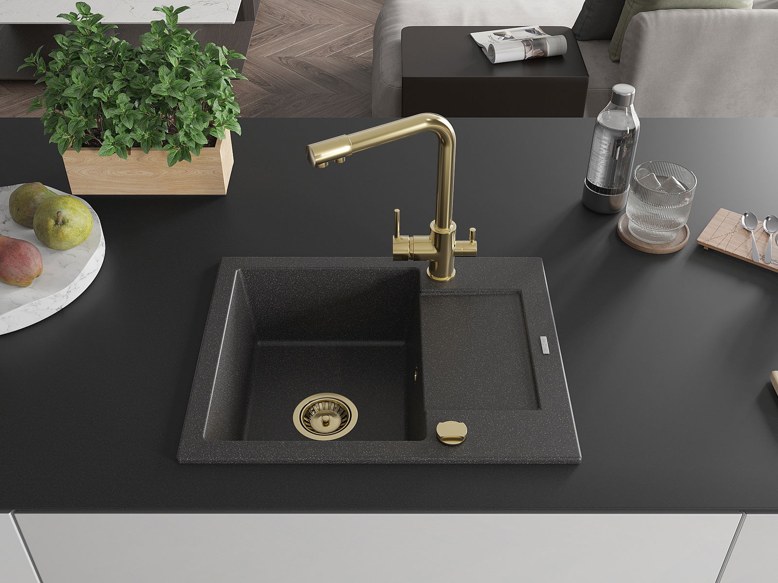 Zlewozmywak został wykonany z wysokiej jakości granitu. Stanowi eleganckie, a przede wszystkim praktyczne uzupełnienie każdej kuchni, niezależnie od jej stylu. Wysoka jakość oraz trwałość granitu zapewniają wieloletnie użytkowanie.