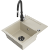 Zlewozmywak został wykonany z wysokiej jakości granitu. Stanowi eleganckie, a przede wszystkim praktyczne uzupełnienie każdej kuchni, niezależnie od jej stylu. Wysoka jakość oraz trwałość granitu zapewniają wieloletnie użytkowanie.