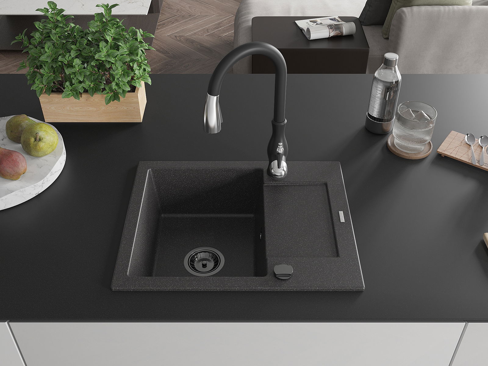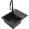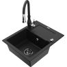 Mexen Enzo zlewozmywak granitowy 1-komorowy z ociekaczem i baterią kuchenną Savita, czarny nakrapiany - 6506-76-672601-70-B