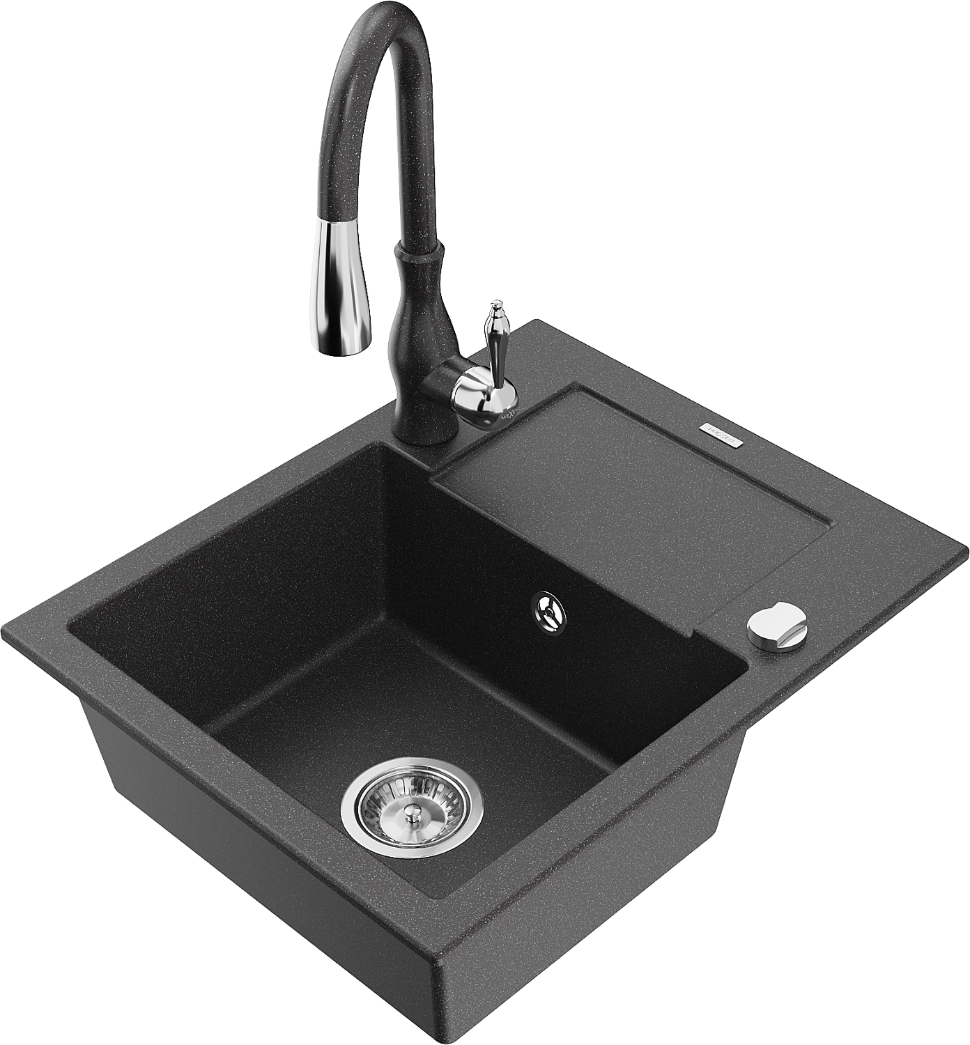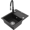 Mexen Enzo zlewozmywak granitowy 1-komorowy z ociekaczem i baterią kuchenną Savita, czarny nakrapiany - 6506-76-672601-76