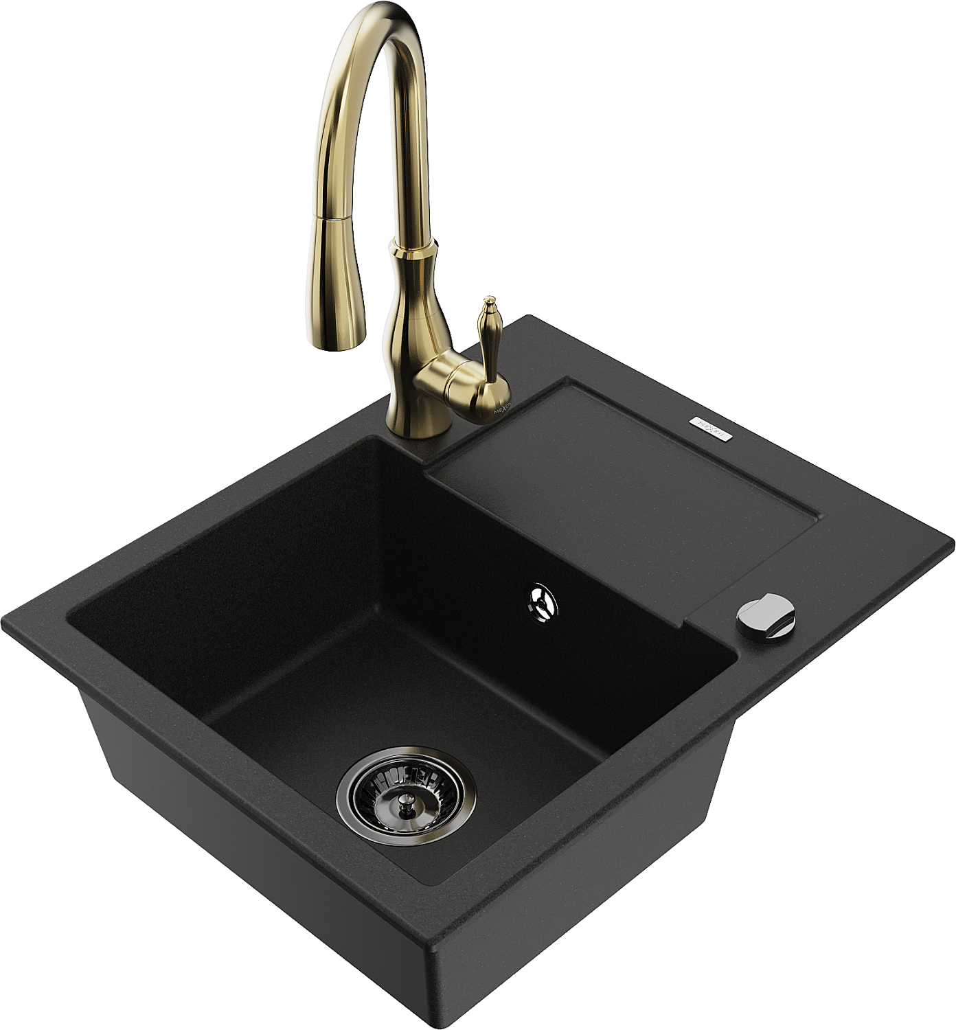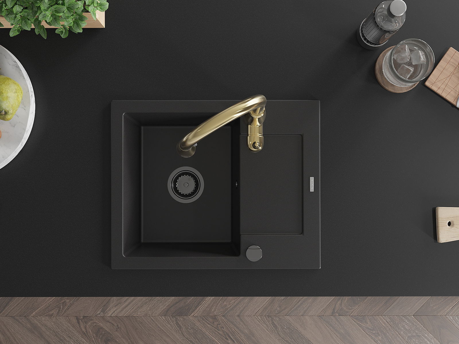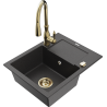 Mexen Enzo zlewozmywak granitowy 1-komorowy z ociekaczem i baterią kuchenną Savita, czarny - 6506-77-672601-50-B