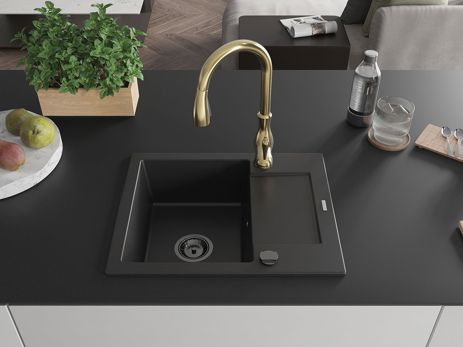 Zlewozmywak został wykonany z wysokiej jakości granitu. Stanowi eleganckie, a przede wszystkim praktyczne uzupełnienie każdej kuchni, niezależnie od jej stylu. Wysoka jakość oraz trwałość granitu zapewniają wieloletnie użytkowanie.