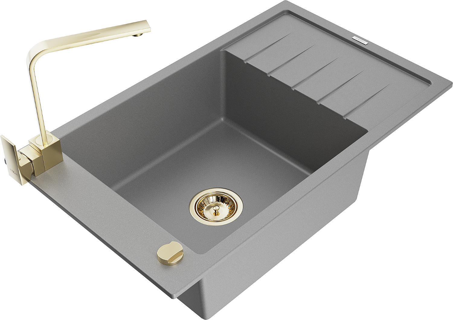 Mexen Elias zlewozmywak granitowy 1-komorowy z ociekaczem i baterią kuchenną Rita, szary - 6511-71-670300-50