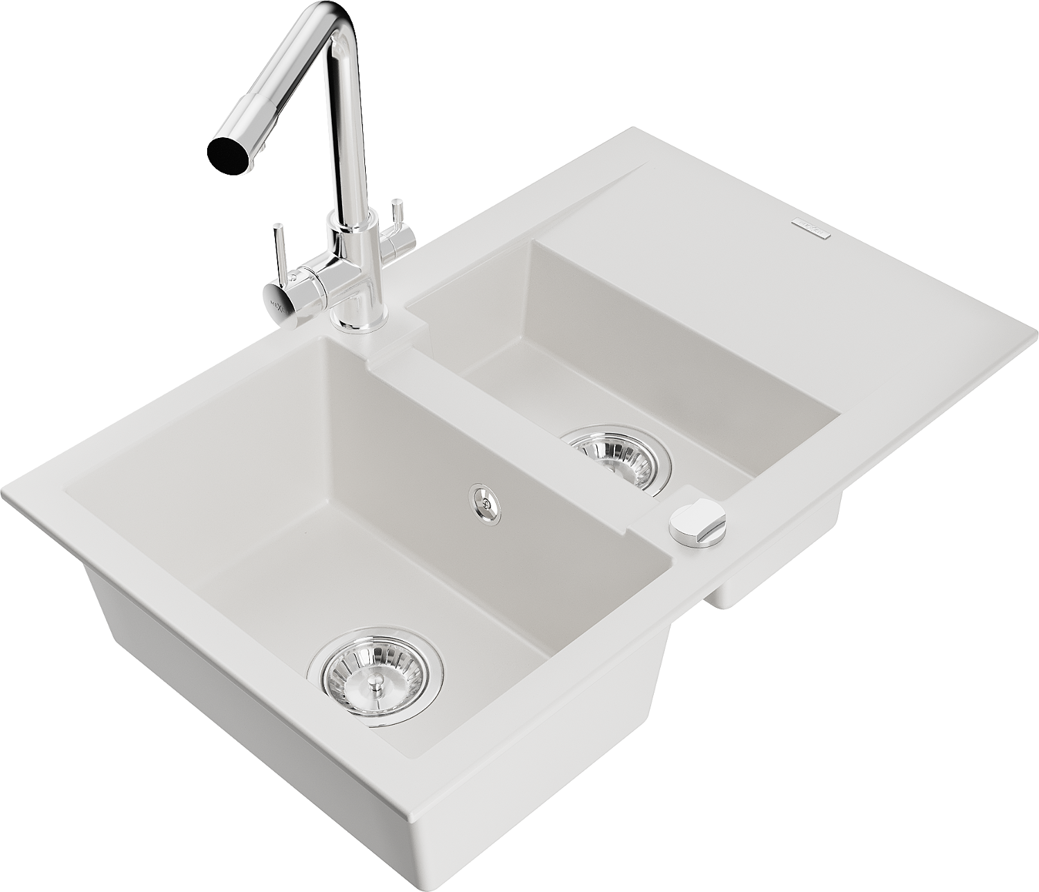Mexen Gaspar zlewozmywak granitowy 1,5-komorowy z ociekaczem i baterią kuchenną Duero, biały - 6507-20-671600-00