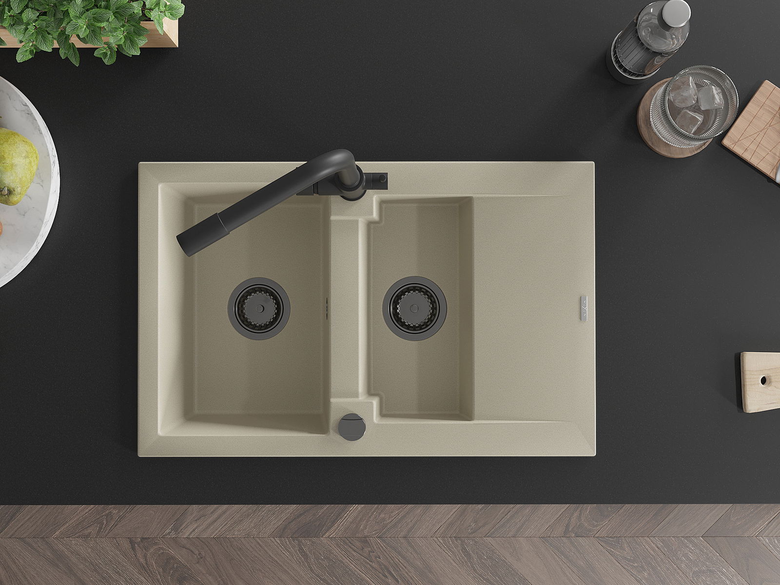 Mexen Gaspar zlewozmywak granitowy 1,5-komorowy z ociekaczem i baterią kuchenną Duero, beżowy - 6507-69-671600-70