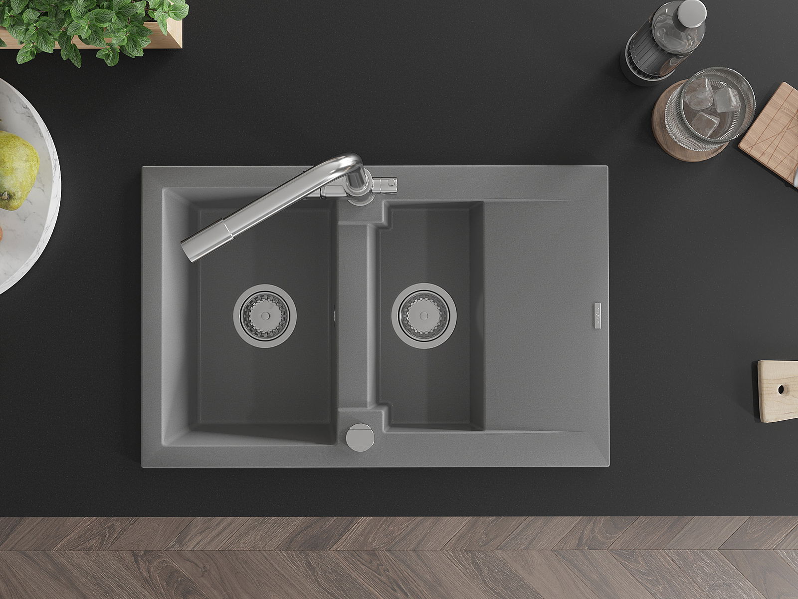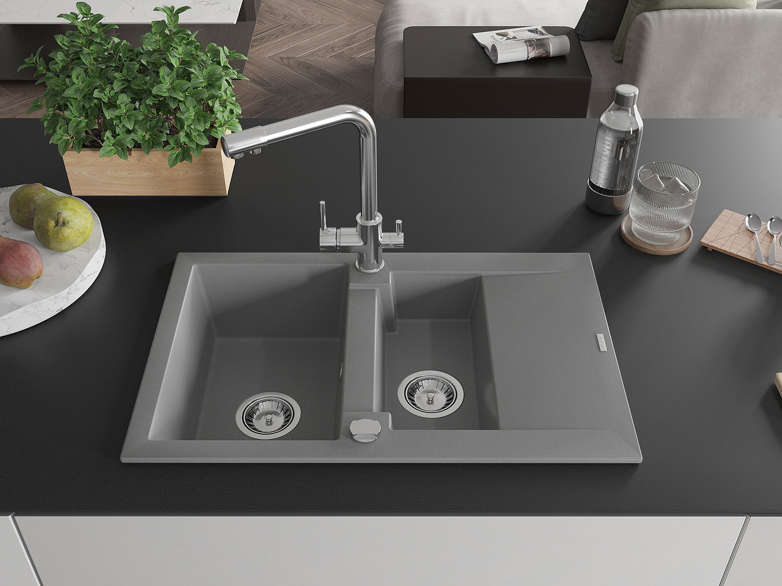 Zlewozmywak został wykonany z wysokiej jakości granitu. Stanowi eleganckie, a przede wszystkim praktyczne uzupełnienie każdej kuchni, niezależnie od jej stylu. Wysoka jakość oraz trwałość granitu zapewniają wieloletnie użytkowanie.