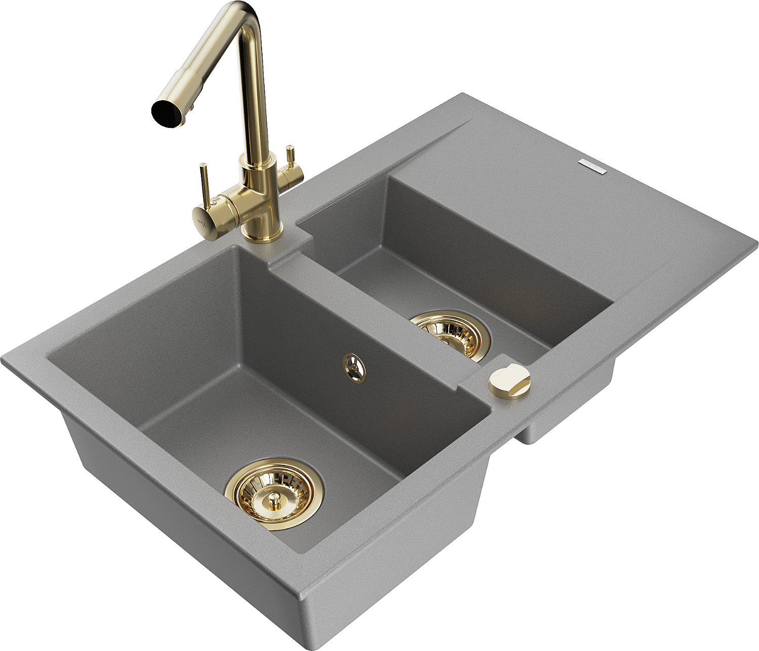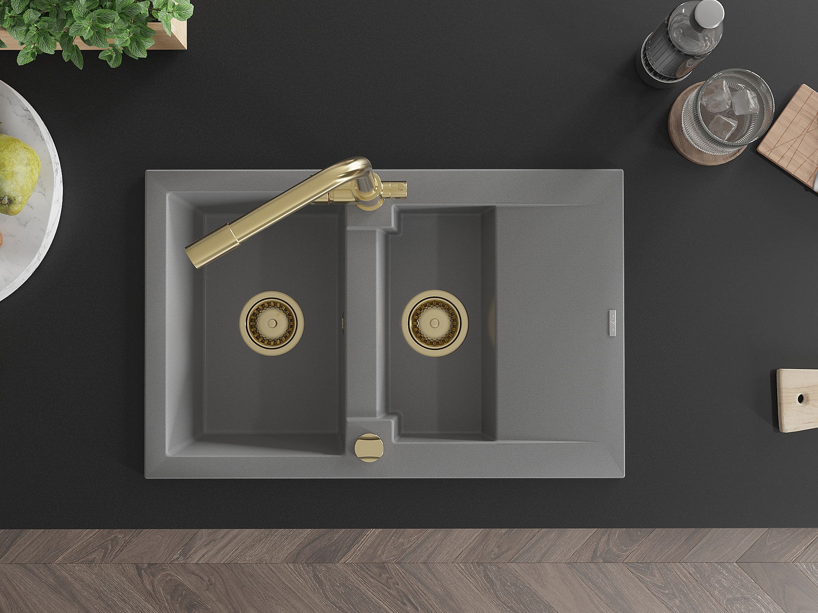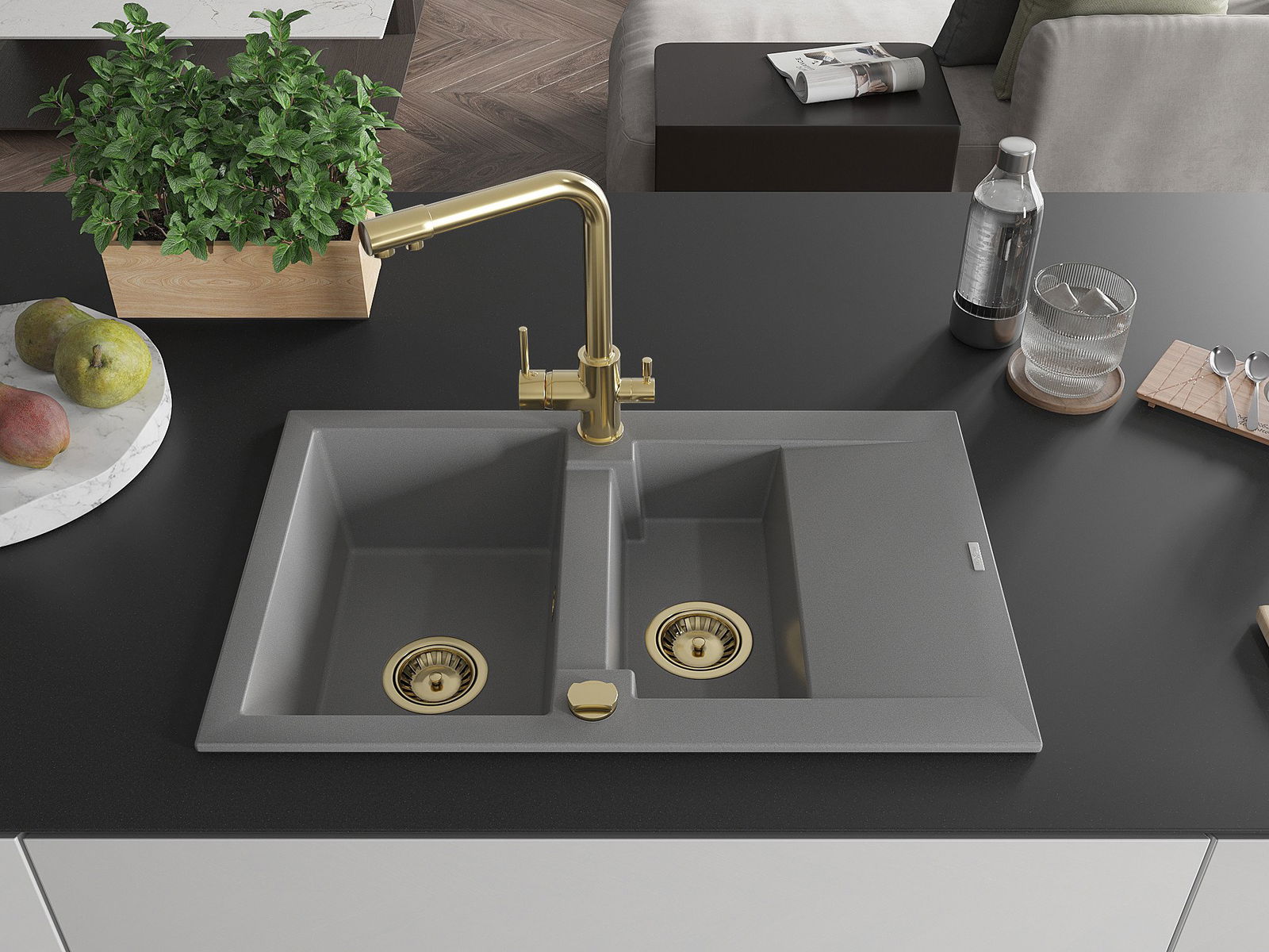 Mexen Gaspar zlewozmywak granitowy 1,5-komorowy z ociekaczem i baterią kuchenną Duero, szary - 6507-71-671600-50