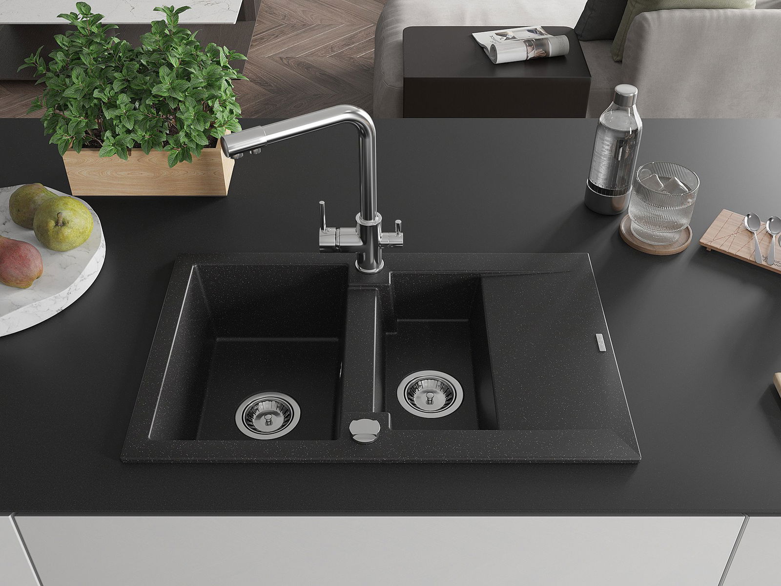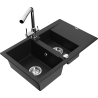 Mexen Gaspar zlewozmywak granitowy 1,5-komorowy z ociekaczem i baterią kuchenną Duero, czarny/srebrny - 6507-73-671600-00