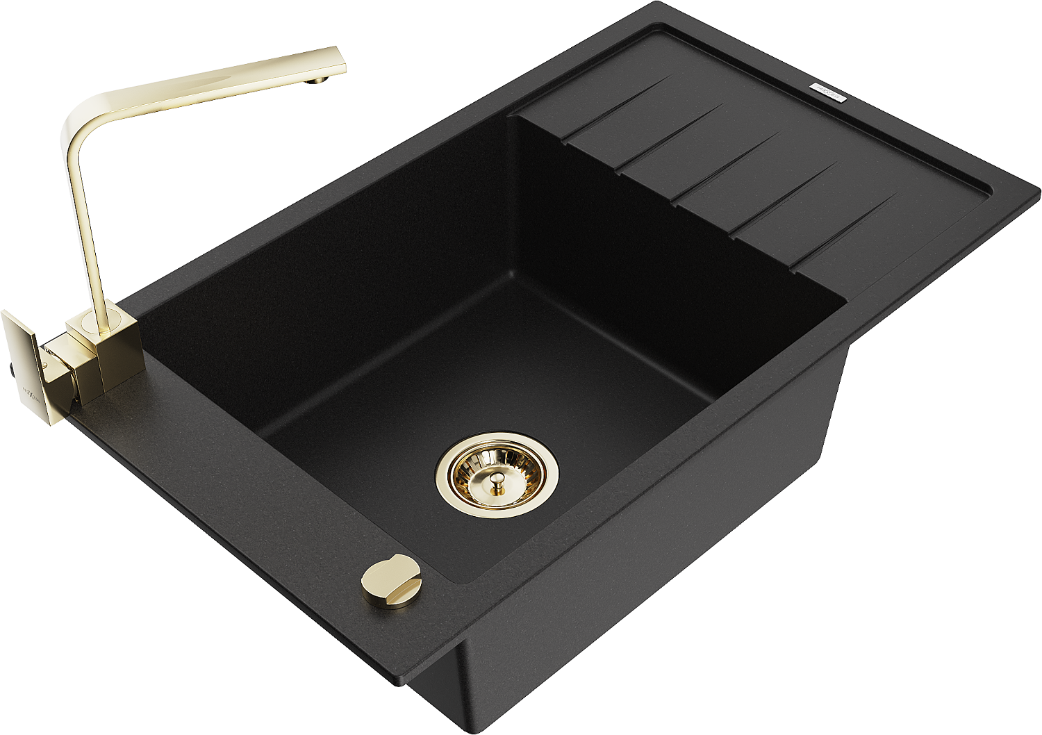 Mexen Elias zlewozmywak granitowy 1-komorowy z ociekaczem i baterią kuchenną Rita, czarny - 6511-77-670300-50