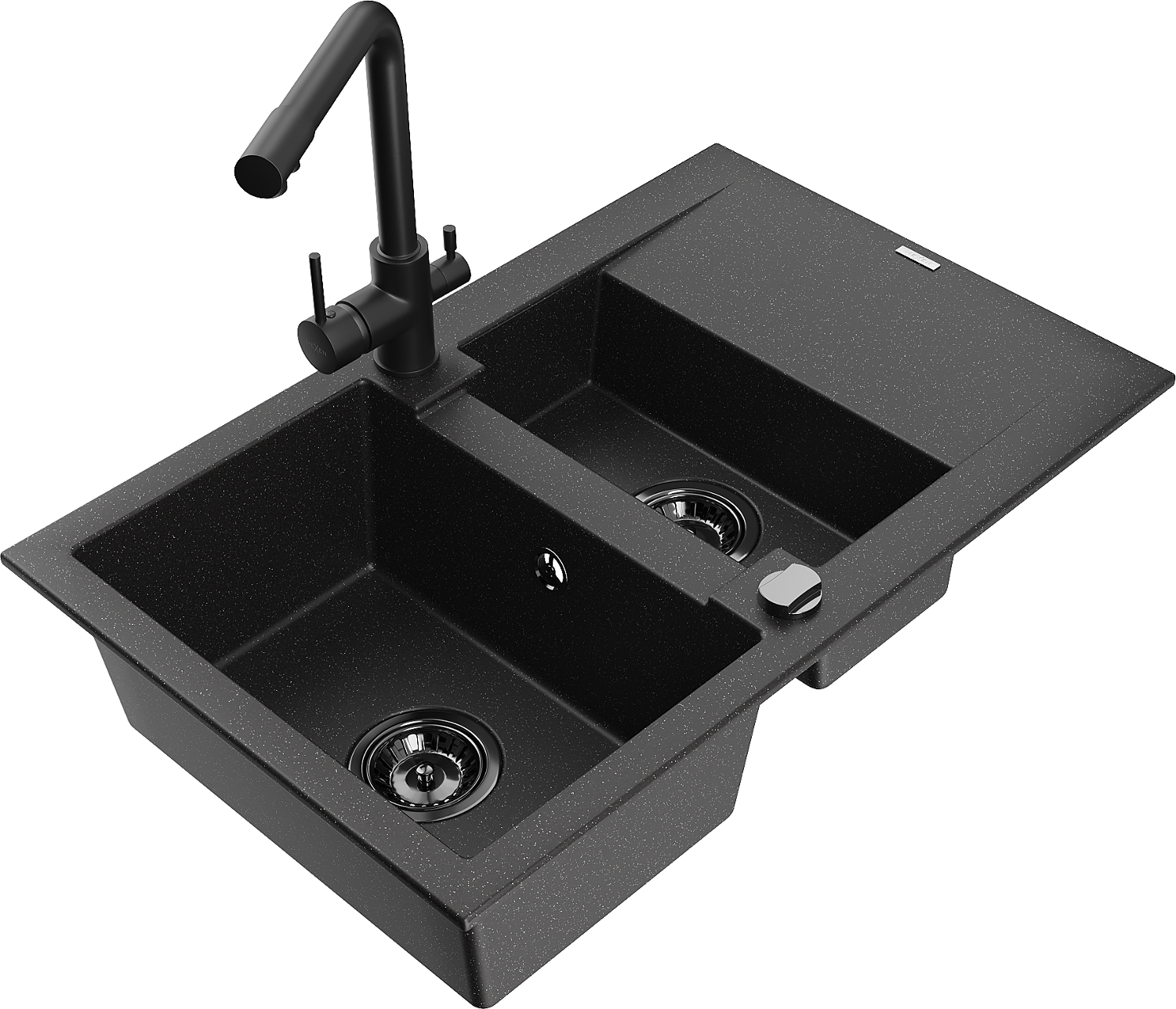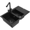 Mexen Gaspar zlewozmywak granitowy 1,5-komorowy z ociekaczem i baterią kuchenną Duero, czarny/srebrny - 6507-73-671600-70-B