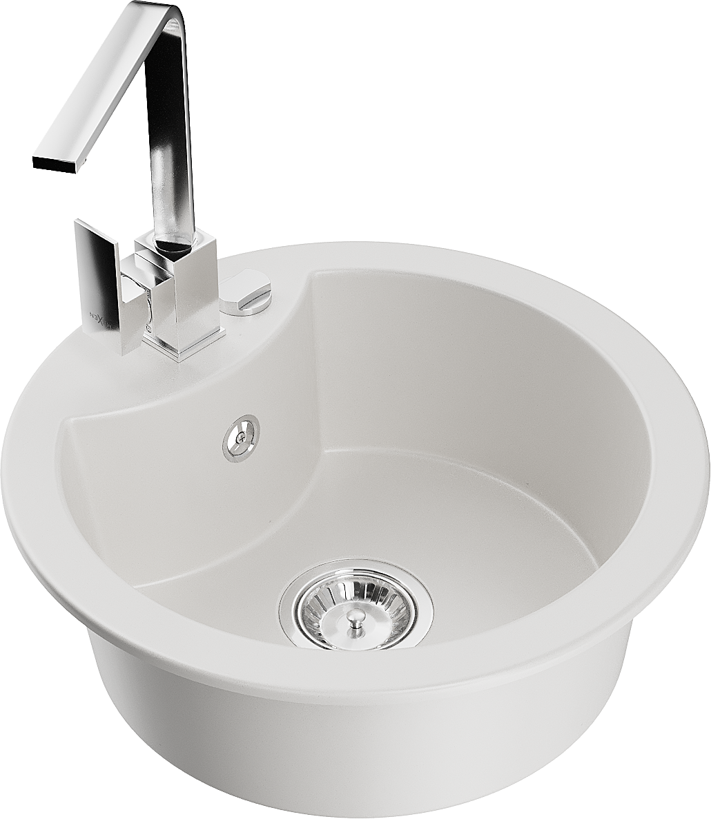 Mexen Diego zlewozmywak granitowy 1-komorowy z baterią kuchenną Rita, biały - 6512-20-670300-00