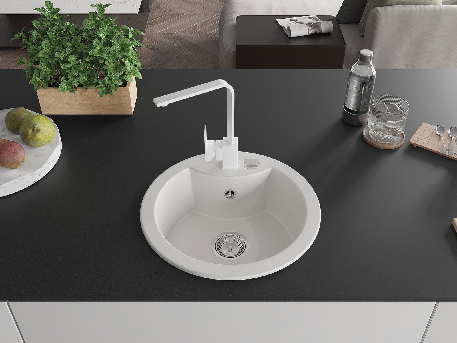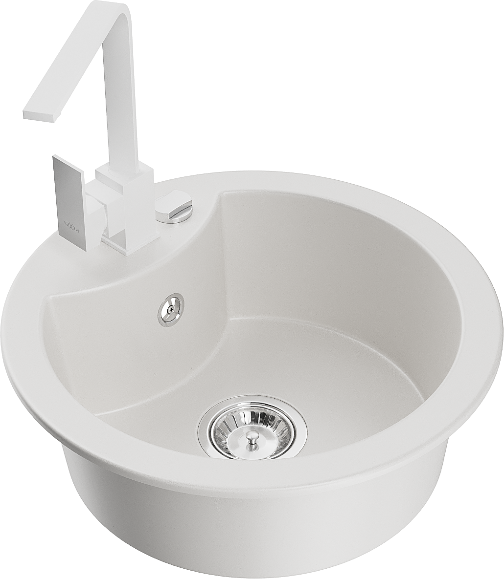 Mexen Diego zlewozmywak granitowy 1-komorowy z baterią kuchenną Rita, biały - 6512-20-670300-20