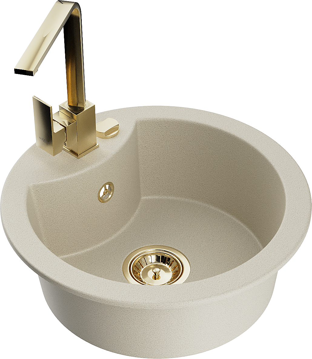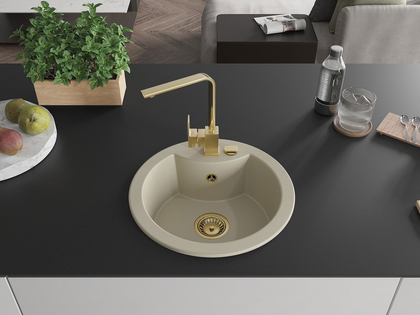 Mexen Diego zlewozmywak granitowy 1-komorowy z baterią kuchenną Rita, beżowy - 6512-69-670300-50