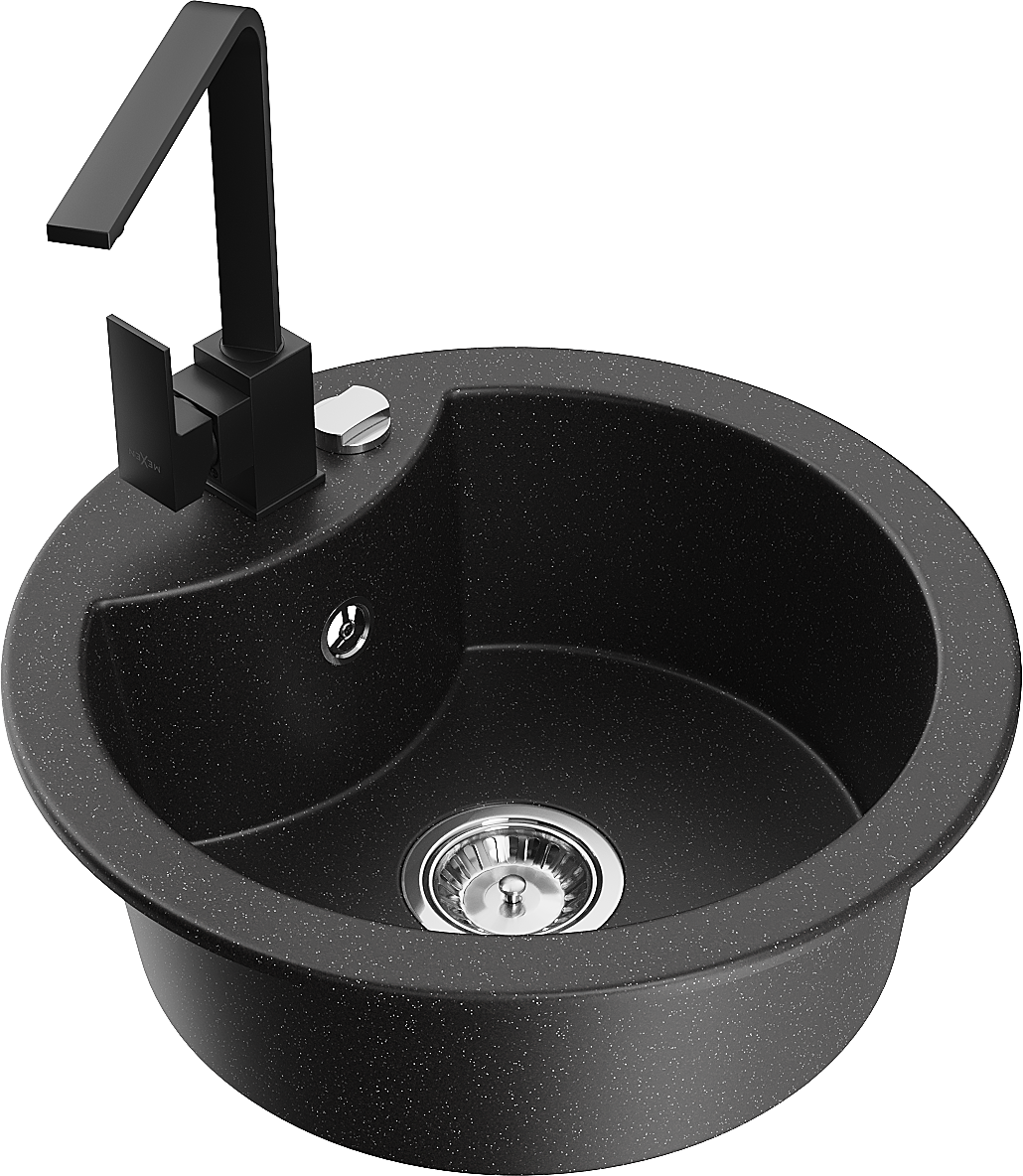 Mexen Diego zlewozmywak granitowy 1-komorowy z baterią kuchenną Rita, czarny/srebrny metalik - 6512-73-670300-70