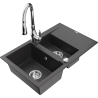 Mexen Gaspar zlewozmywak granitowy 1,5-komorowy z ociekaczem i baterią kuchenną Savita, czarny - 6507-77-672601-00