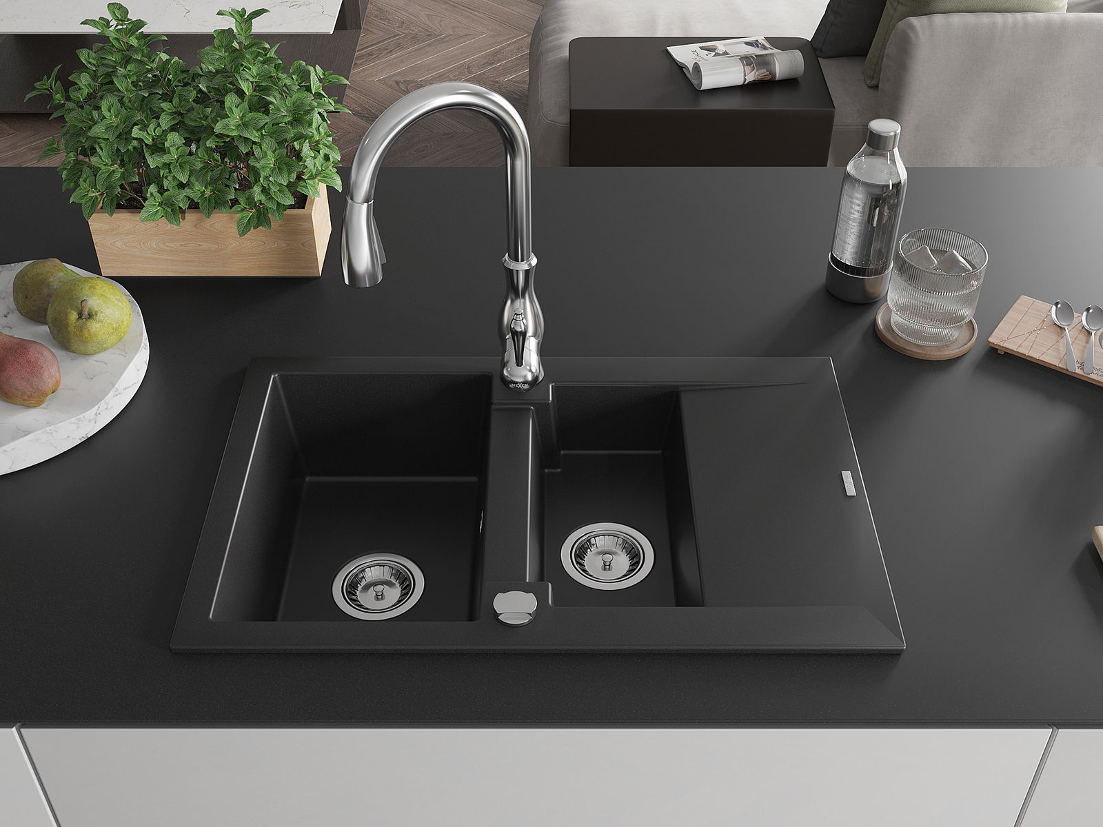 Zlewozmywak został wykonany z wysokiej jakości granitu. Stanowi eleganckie, a przede wszystkim praktyczne uzupełnienie każdej kuchni, niezależnie od jej stylu. Wysoka jakość oraz trwałość granitu zapewniają wieloletnie użytkowanie.