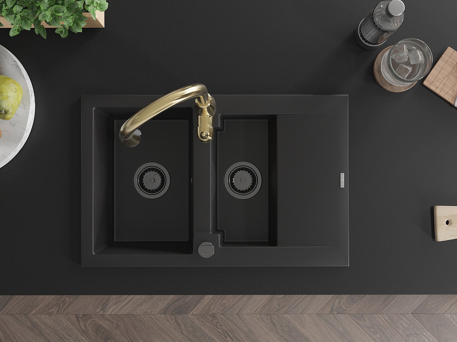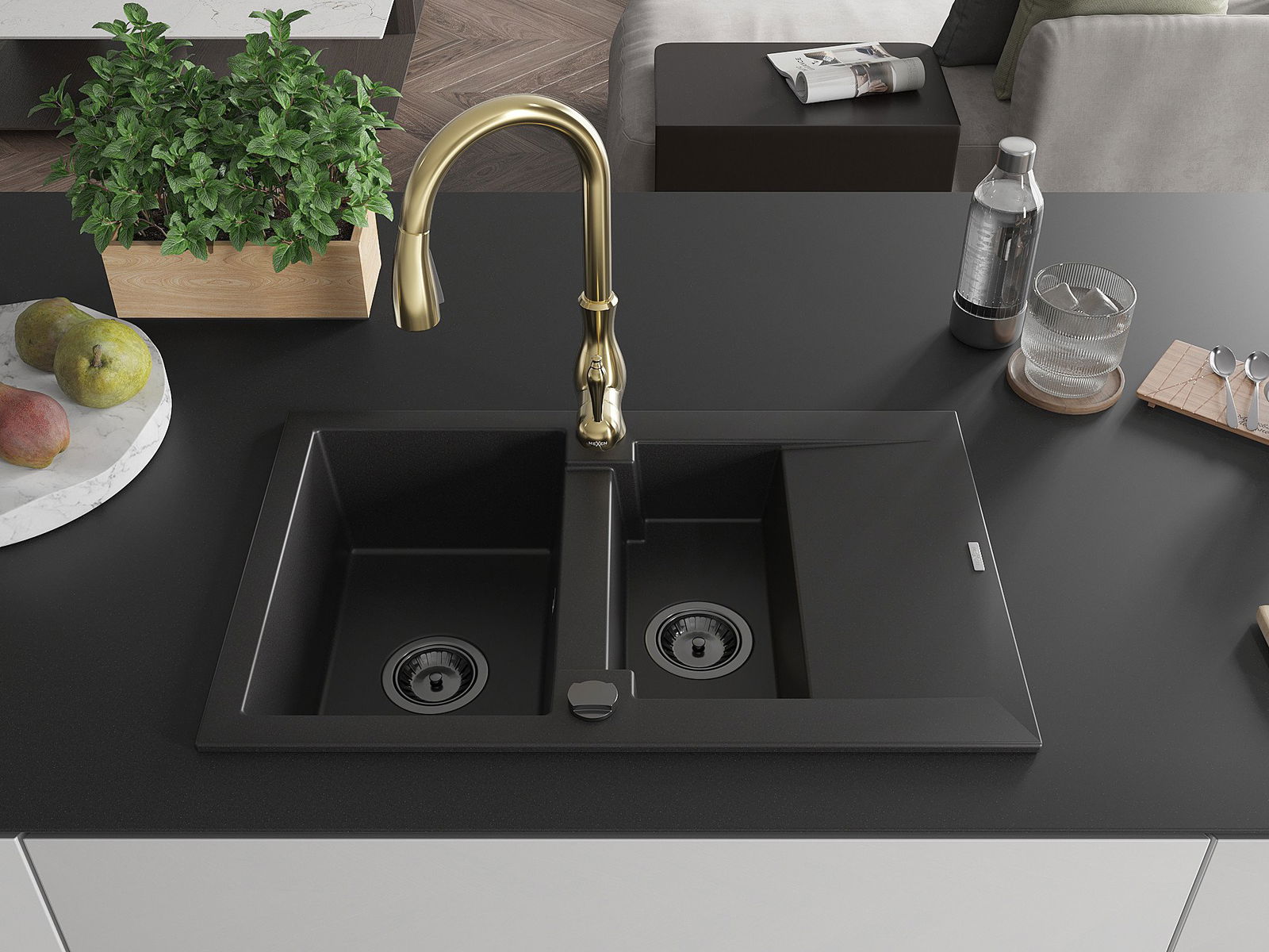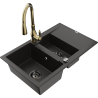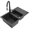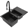 Mexen Gaspar zlewozmywak granitowy 1,5-komorowy z ociekaczem i baterią kuchenną Savita, czarny - 6507-77-672601-50-B